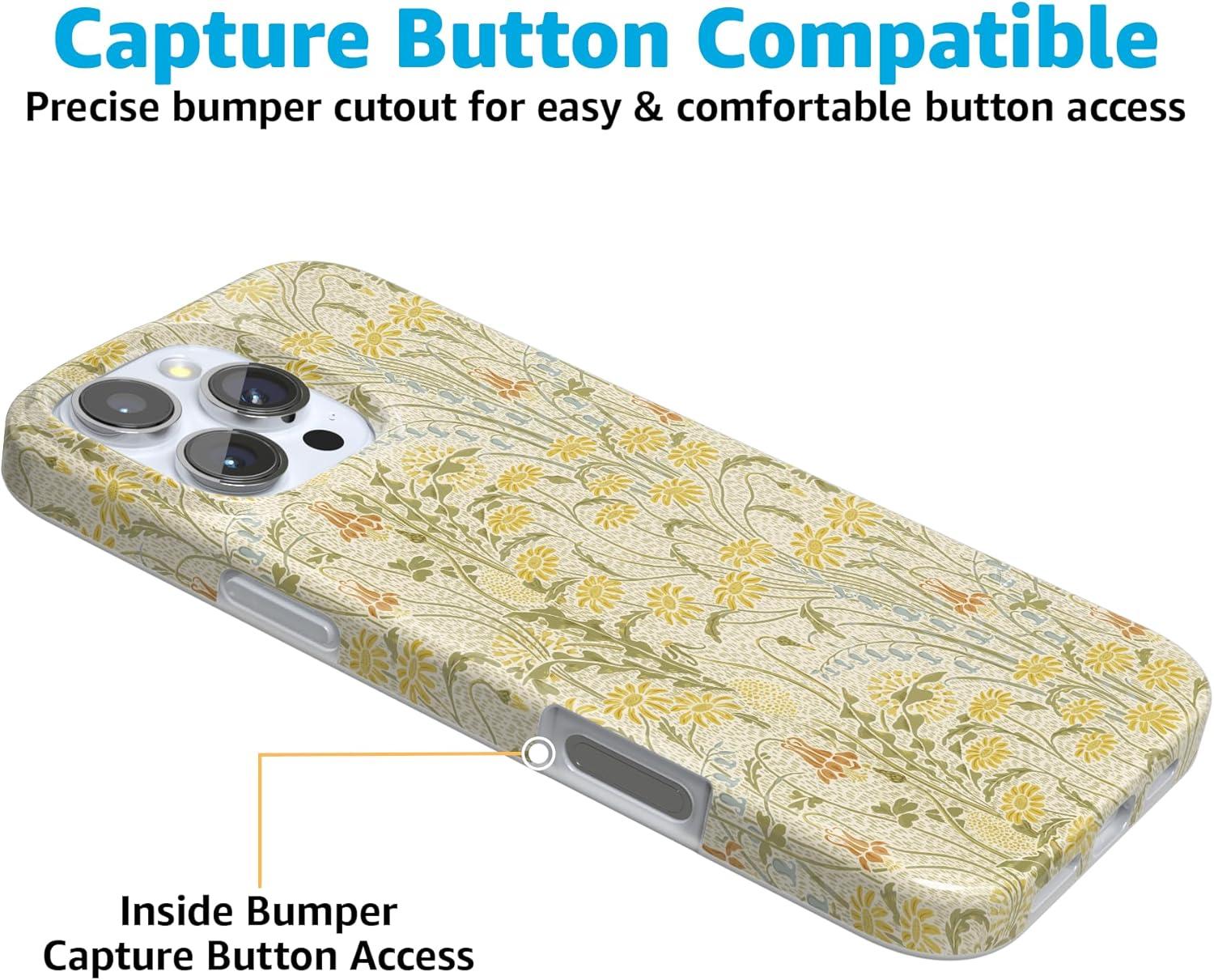 Casely iPhone 16 Pro Max Case | Garden Party | Mushroom Floral | Compatible with MagSafe | Classic Ultra Slim Design(Boho Blooms | Golden Floral)