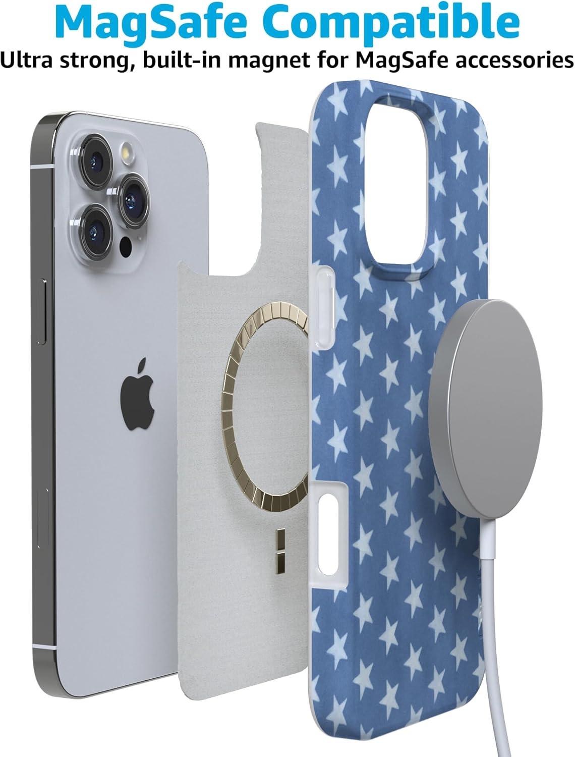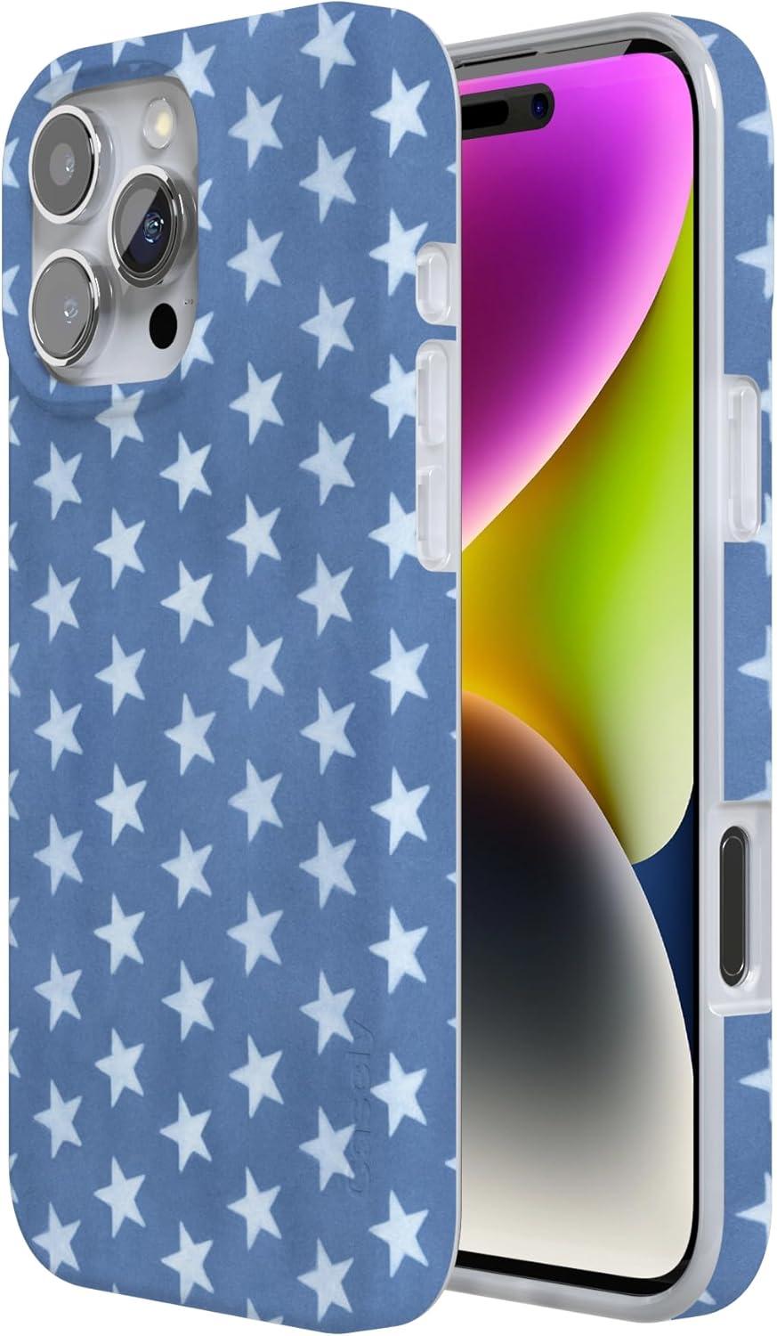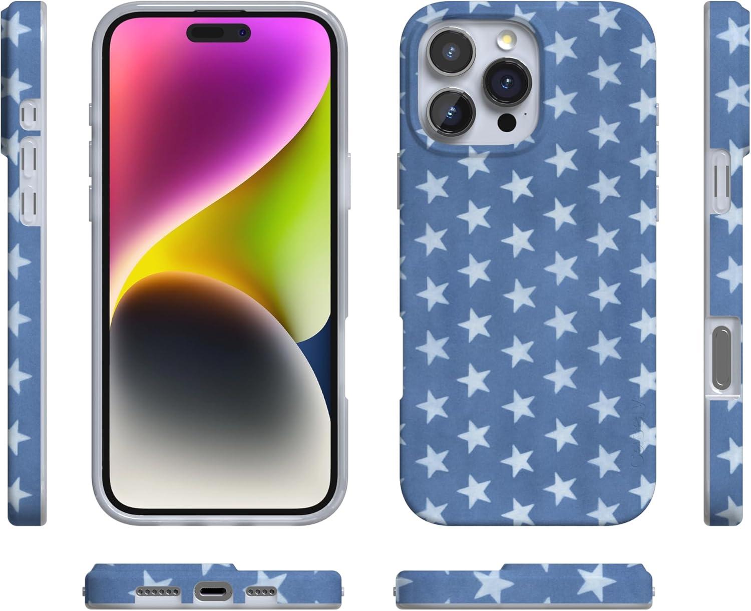 Casely iPhone 16 Pro Max Case | Garden Party | Mushroom Floral | Compatible with MagSafe | Classic Ultra Slim Design(Coastal Blues | Denim Stars)
