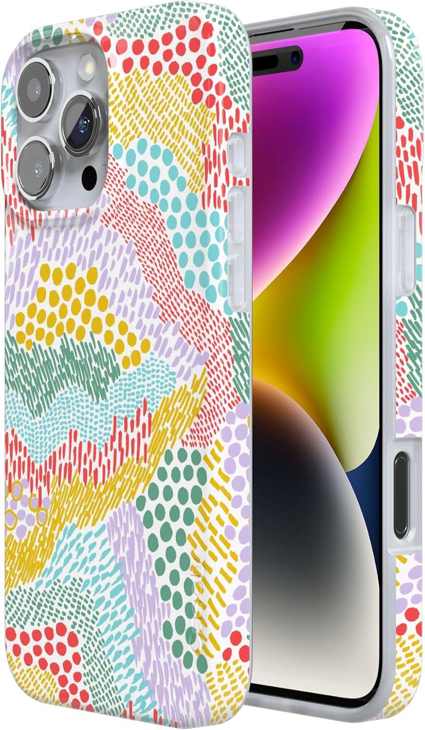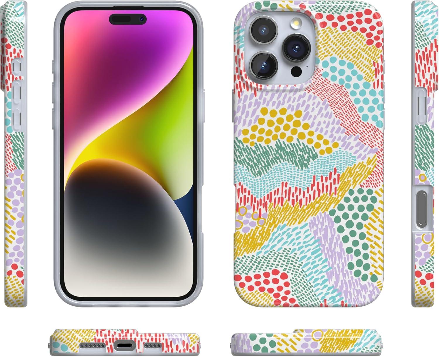 Casely iPhone 16 Pro Max Case | Garden Party | Mushroom Floral | Compatible with MagSafe | Classic Ultra Slim Design(Color Me Happy | Doodle Colorblock)