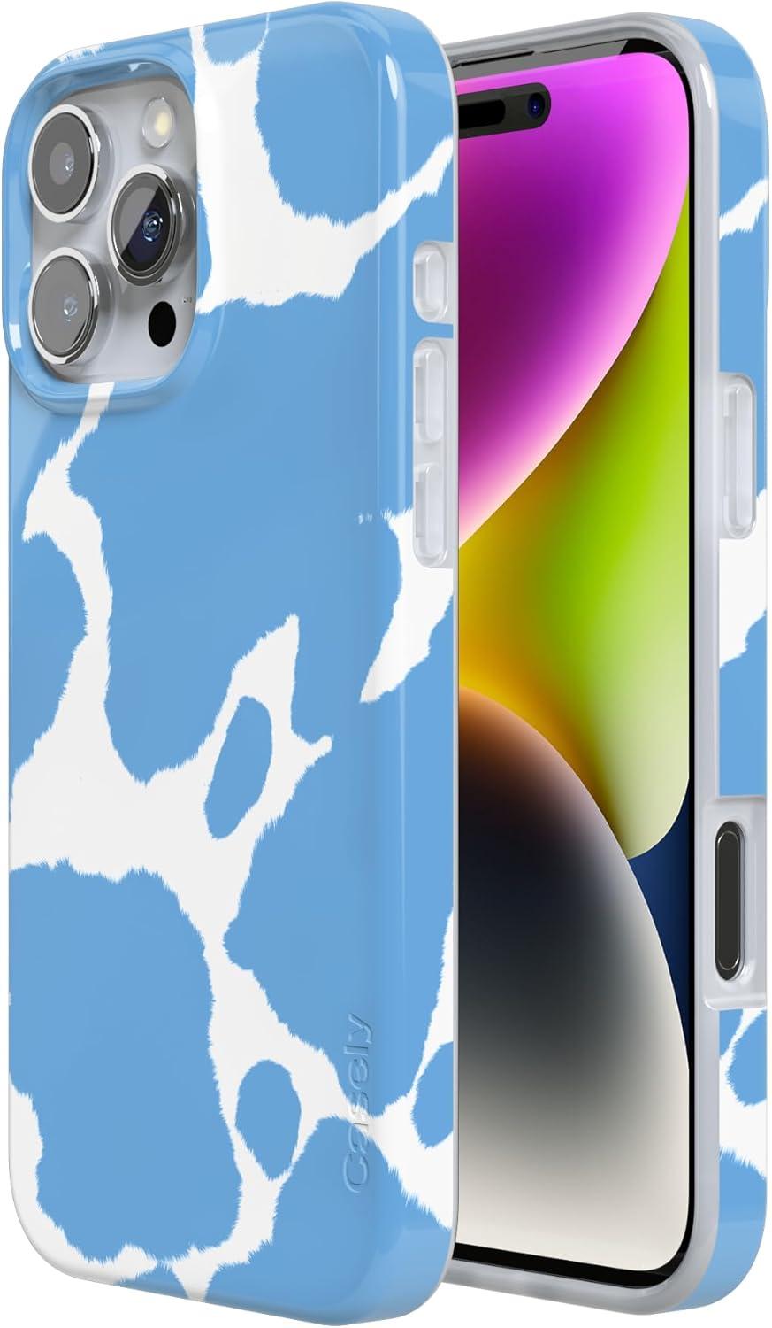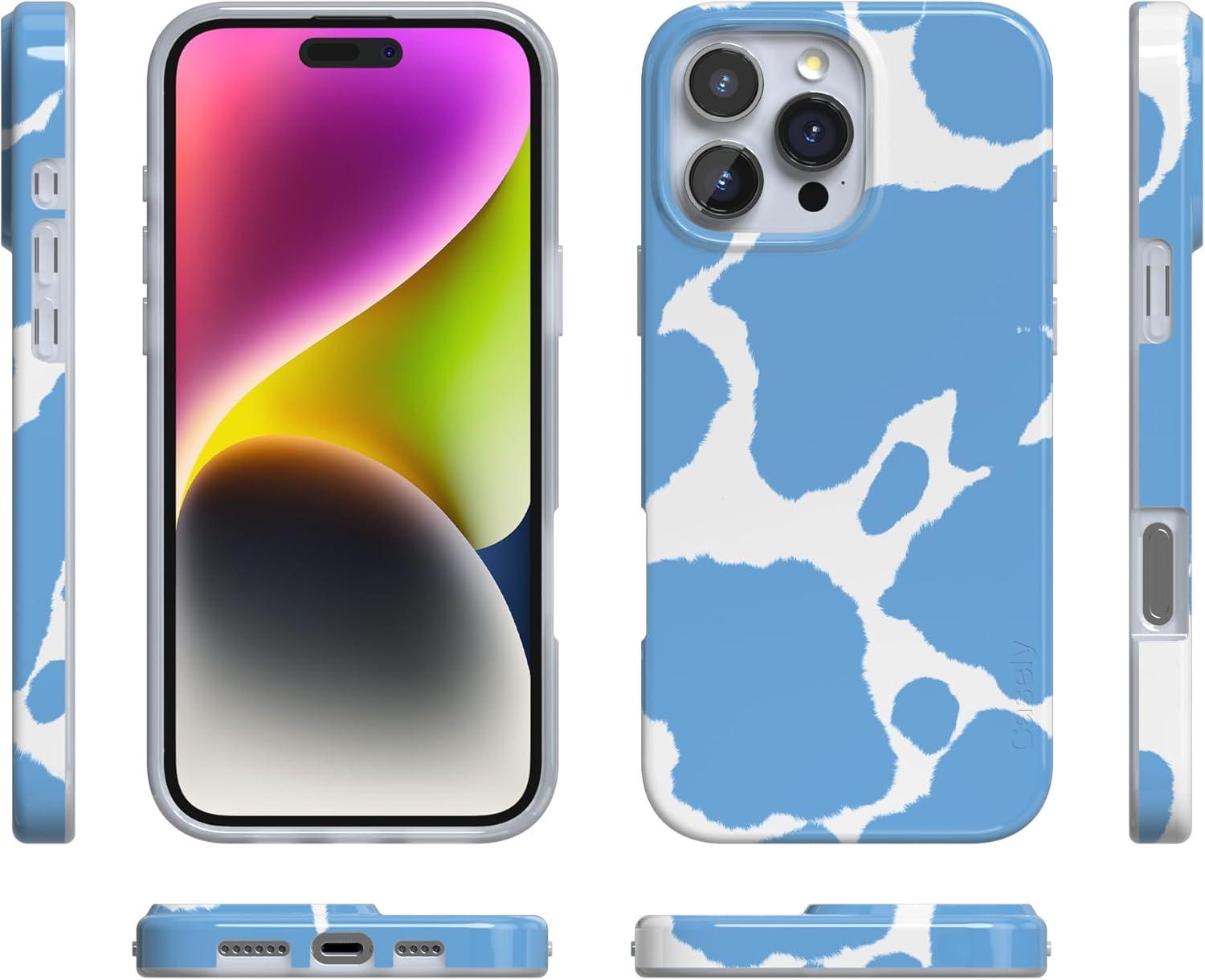 Casely iPhone 16 Pro Max Case | Garden Party | Mushroom Floral | Compatible with MagSafe | Classic Ultra Slim Design(Current MOOd | Light Blue Cow Print)
