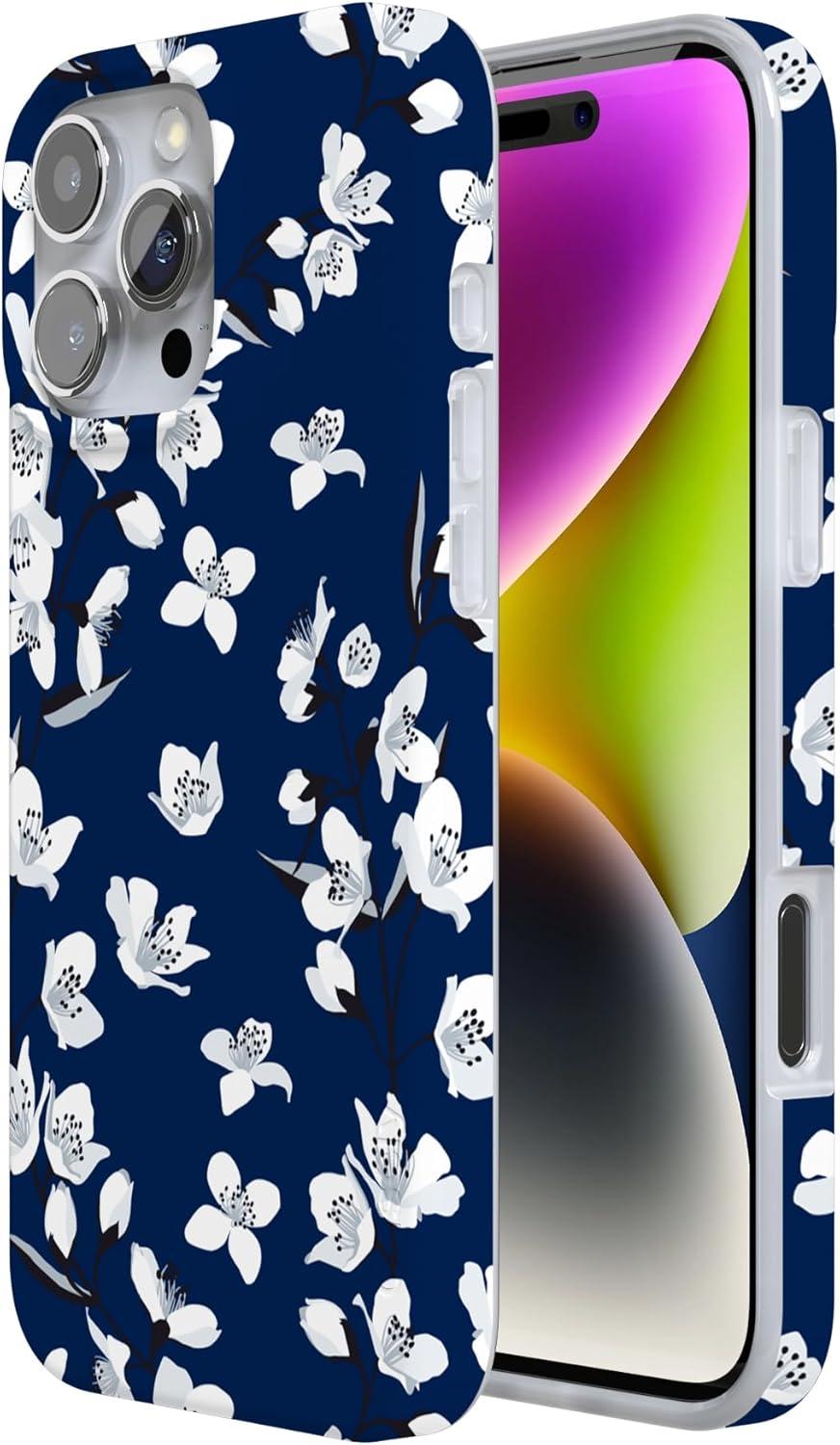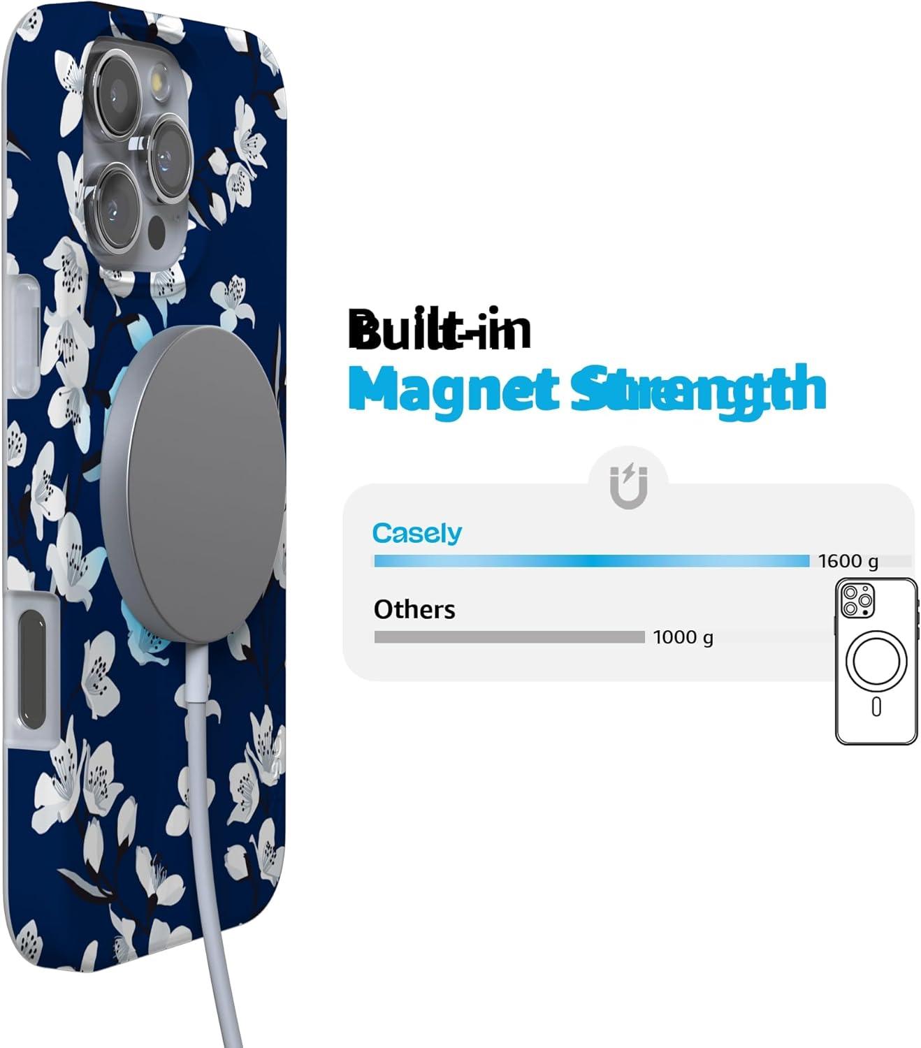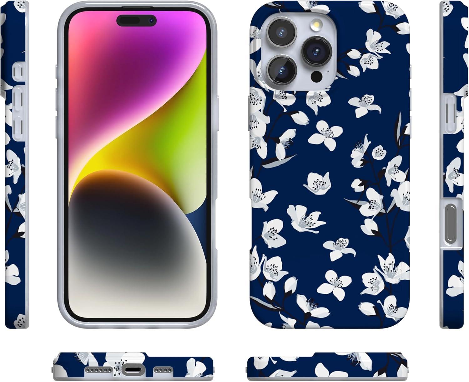 Casely iPhone 16 Pro Max Case | Garden Party | Mushroom Floral | Compatible with MagSafe | Classic Ultra Slim Design(Floral Forest | Navy Cherry Blossom Floral)