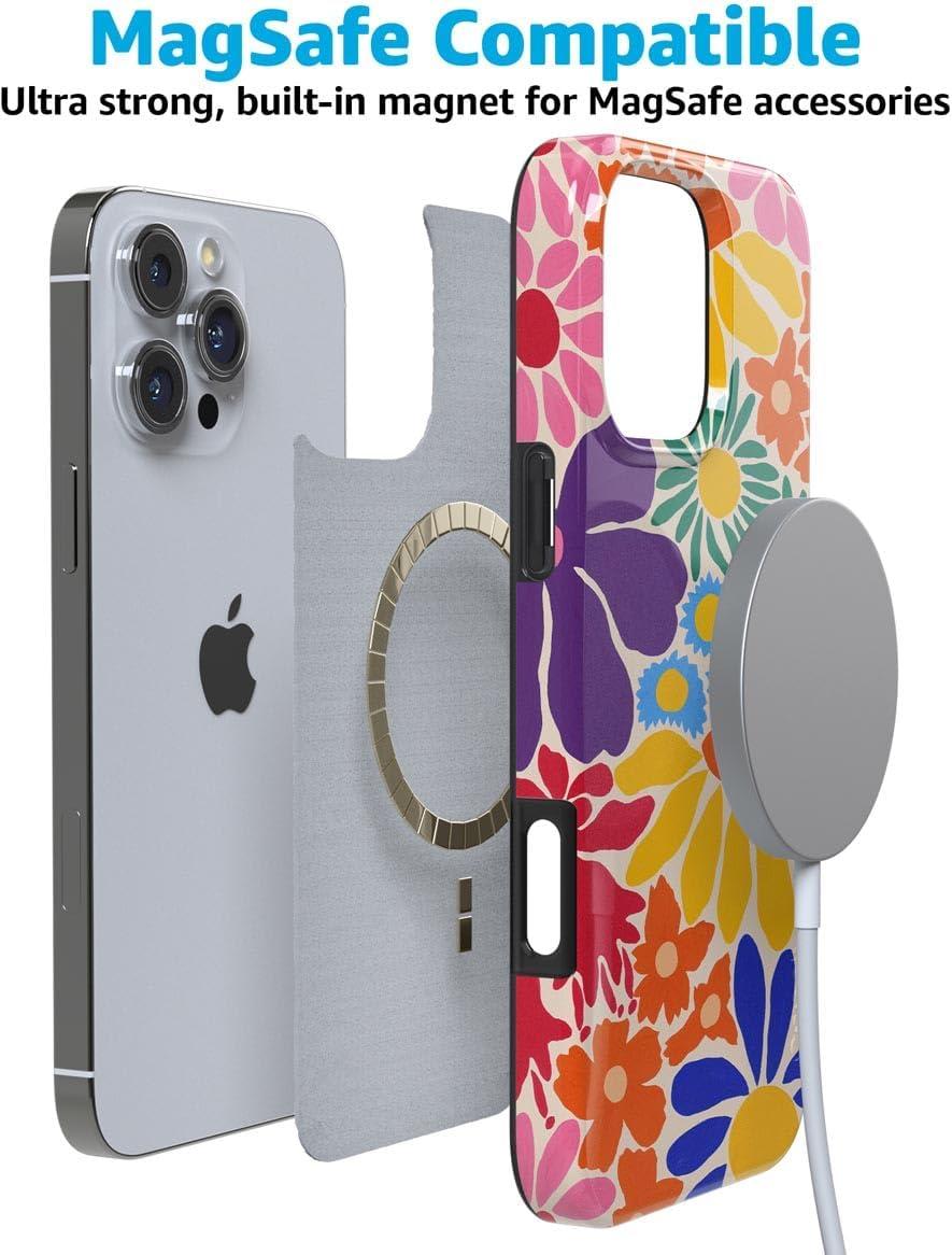 Casely iPhone 16 Pro Max Case | Garden Party | Mushroom Floral | Compatible with MagSafe | Classic Ultra Slim Design(Flower Patch | Multi-Color Floral)
