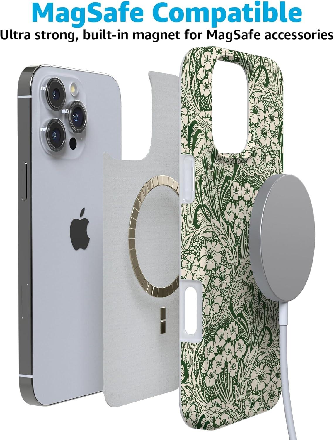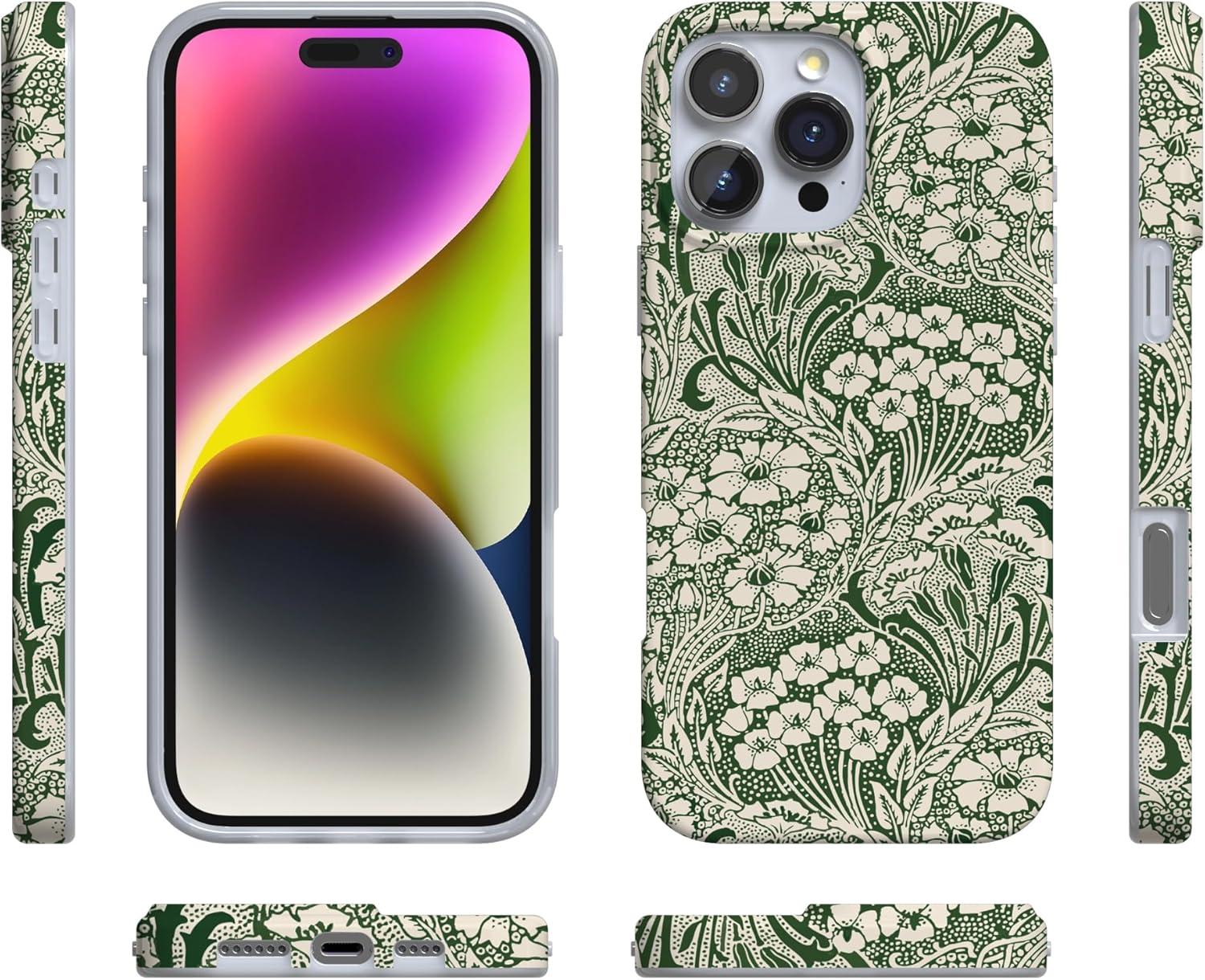 Casely iPhone 16 Pro Max Case | Garden Party | Mushroom Floral | Compatible with MagSafe | Classic Ultra Slim Design(Mystic Meadow | Green Gardens)