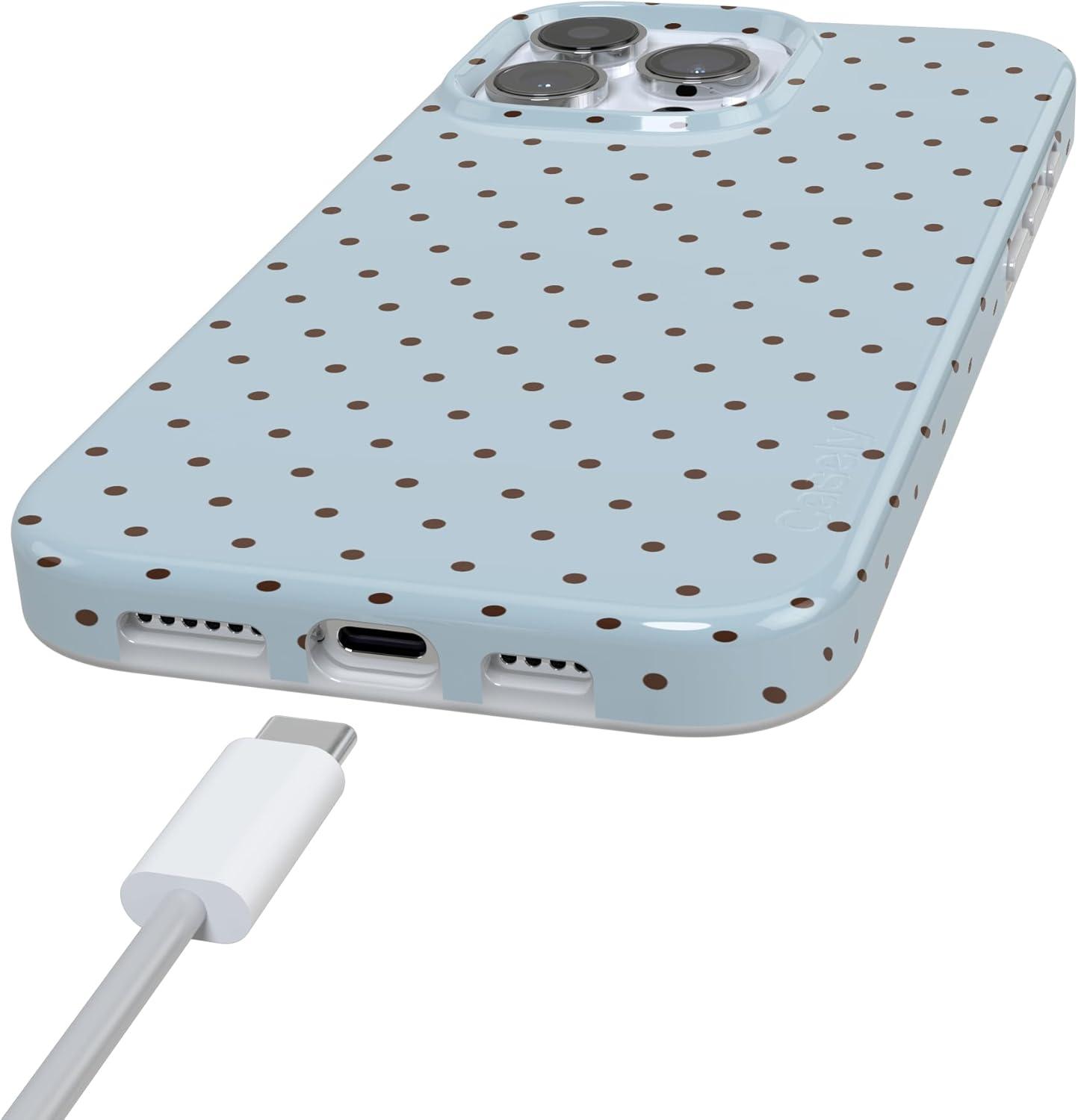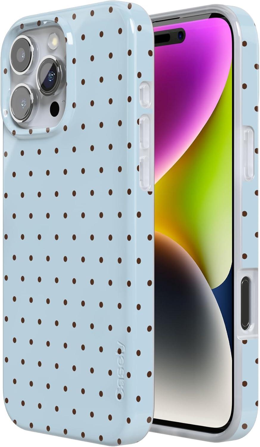 Casely iPhone 16 Pro Max Case | Garden Party | Mushroom Floral | Compatible with MagSafe | Classic Ultra Slim Design(On the Dot | Blue Polka Dot)