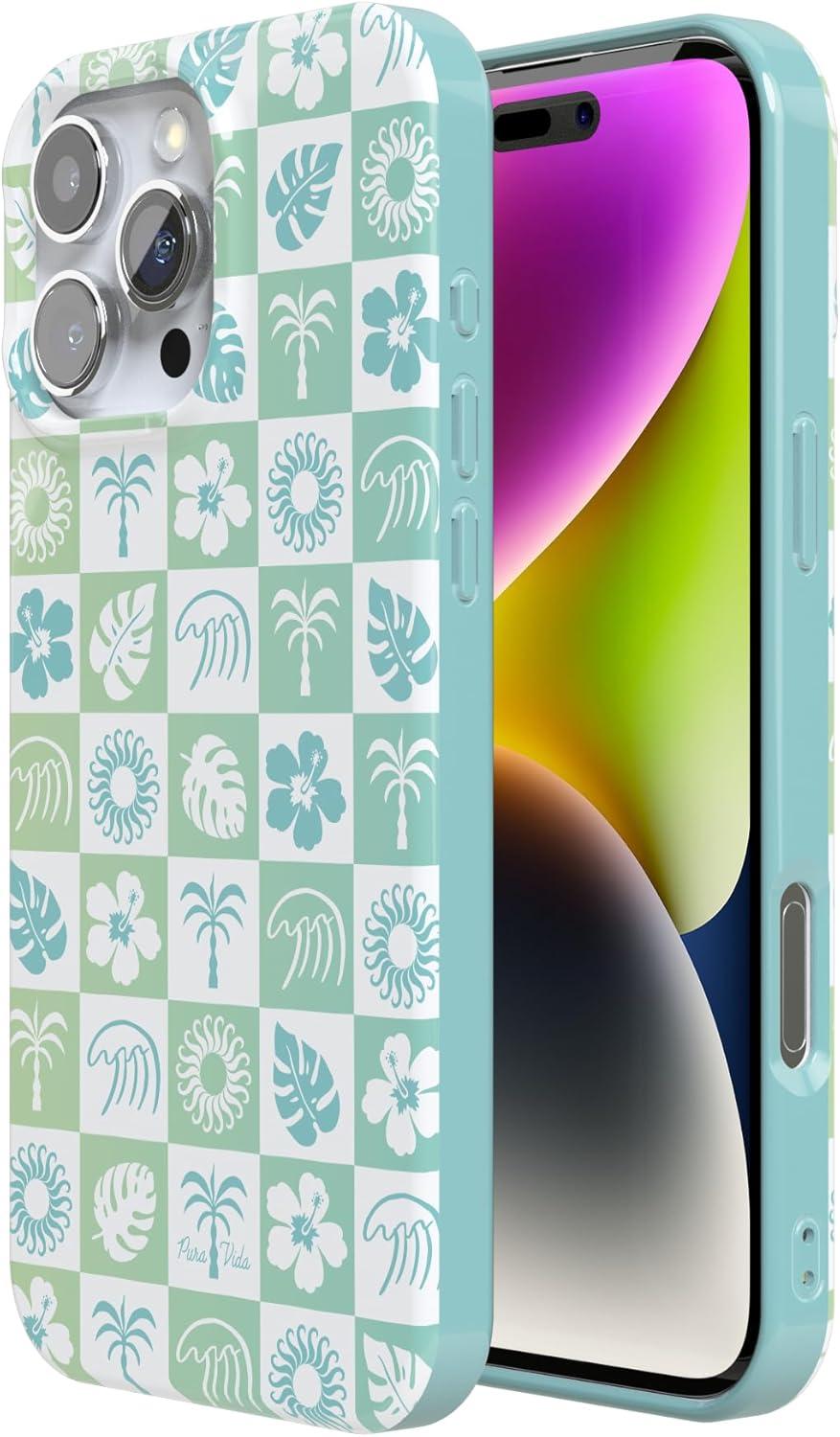 Casely iPhone 16 Pro Max Case | Garden Party | Mushroom Floral | Compatible with MagSafe | Classic Ultra Slim Design(Pura Vida | Coastal Checkers)