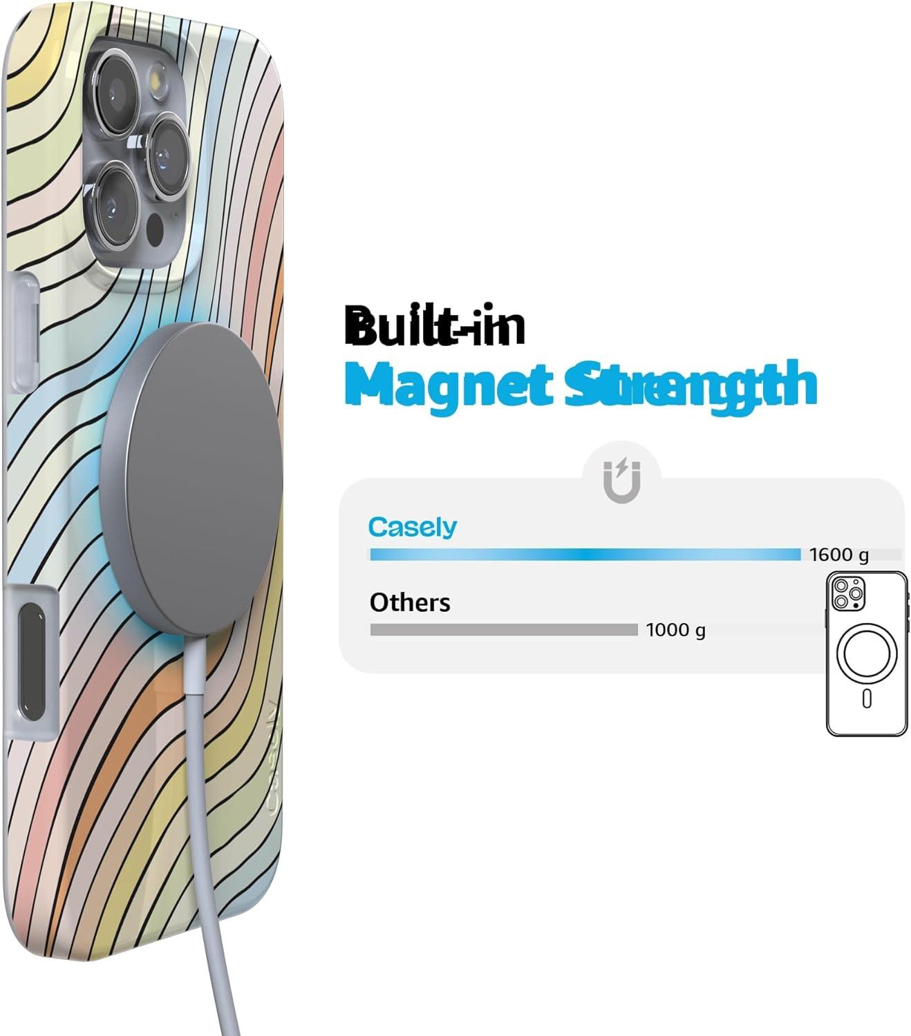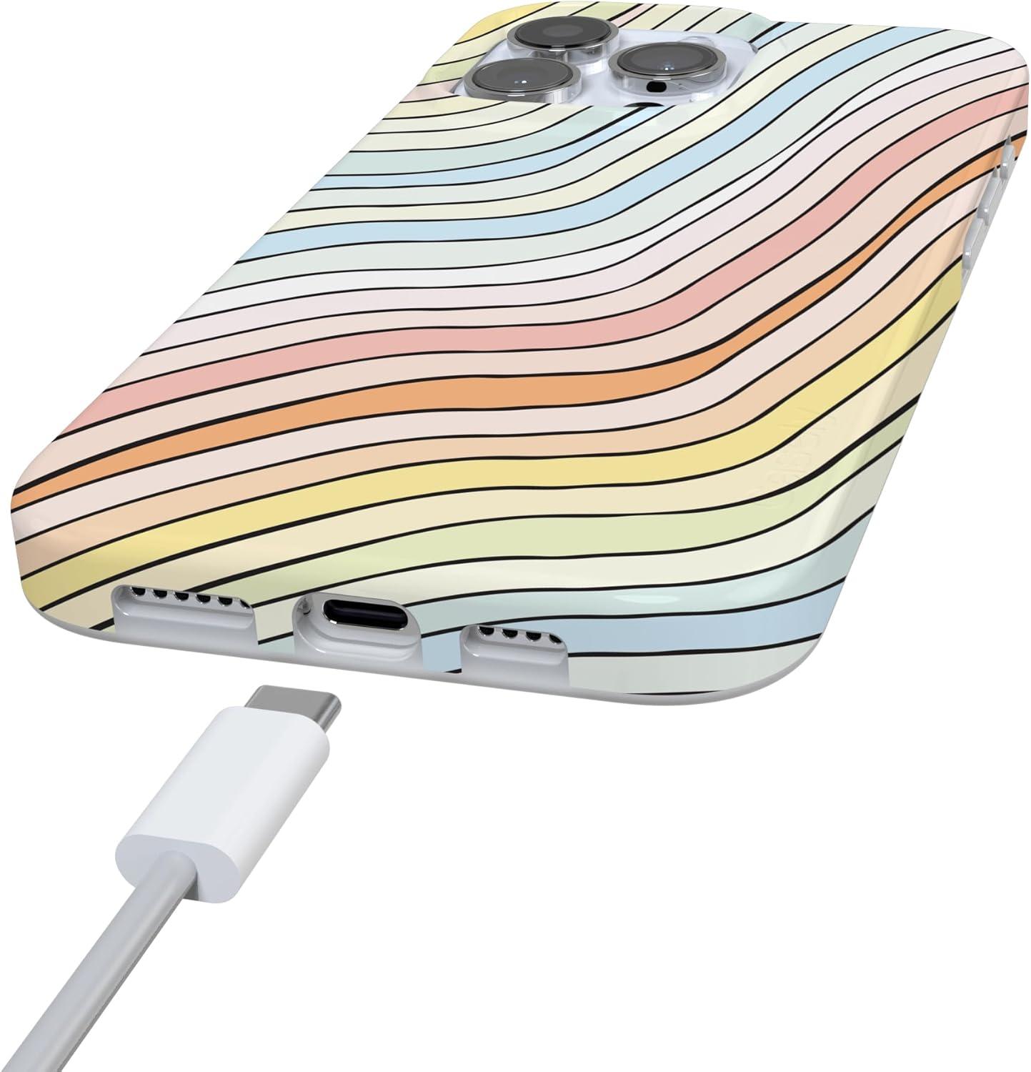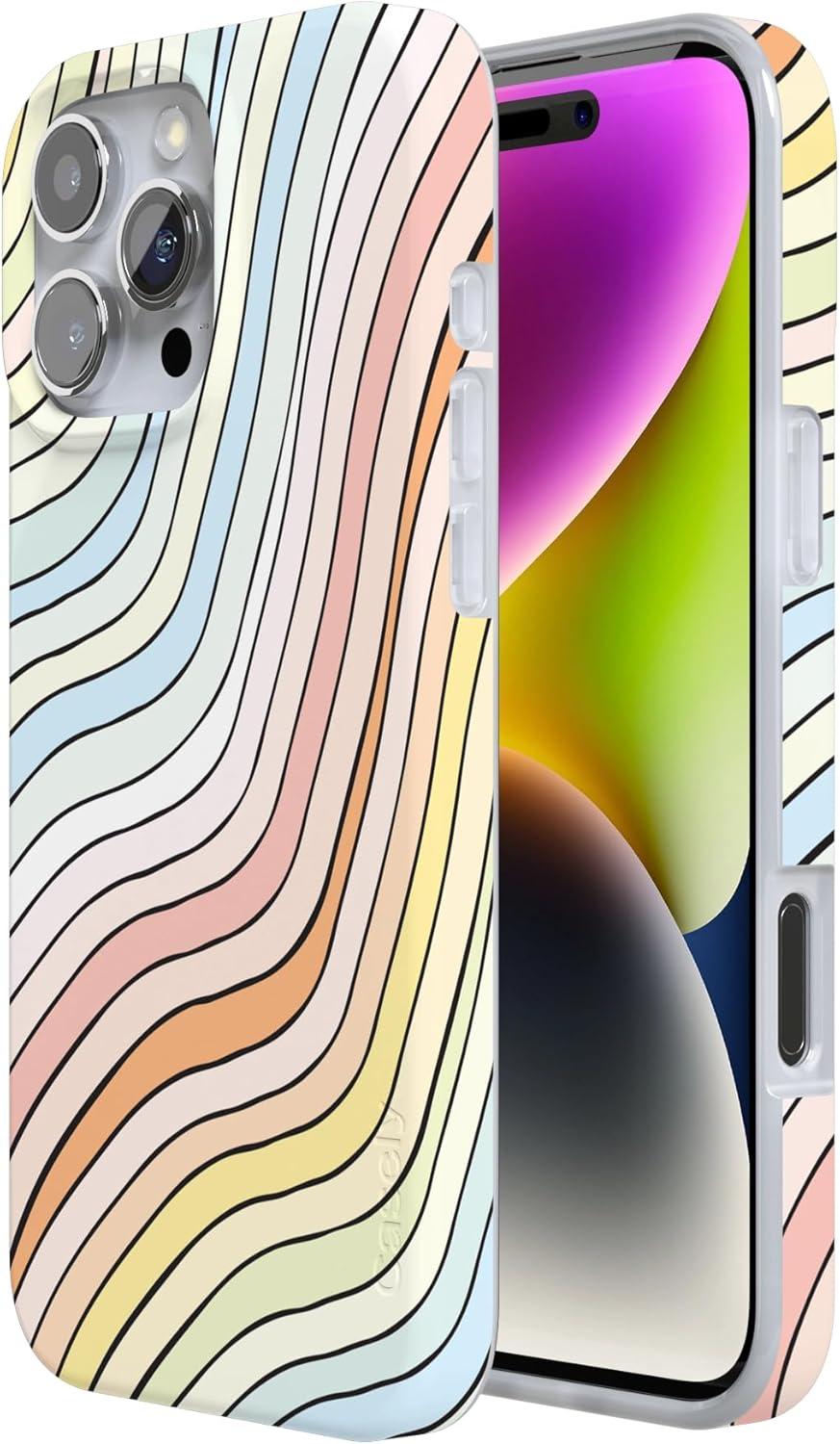 Casely iPhone 16 Pro Max Case | Garden Party | Mushroom Floral | Compatible with MagSafe | Classic Ultra Slim Design(Ride The Wave | Pastel Rainbow Lined)