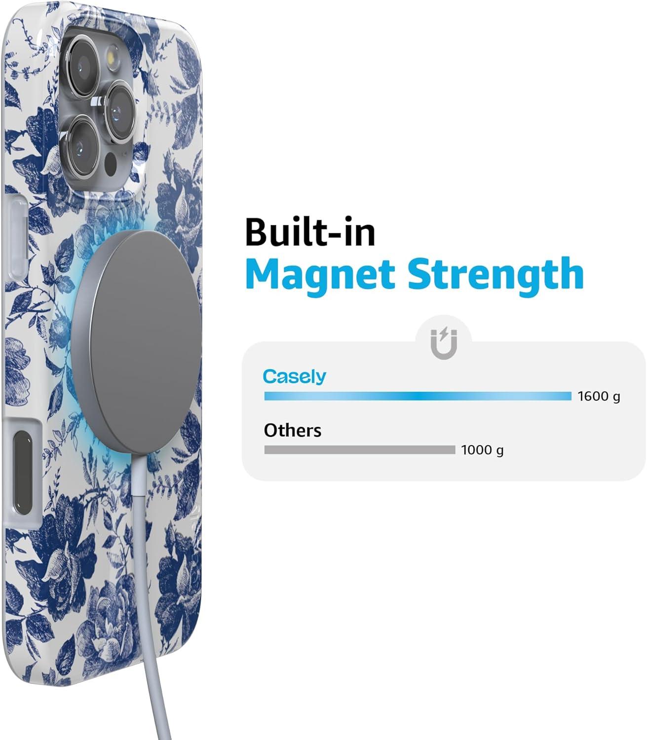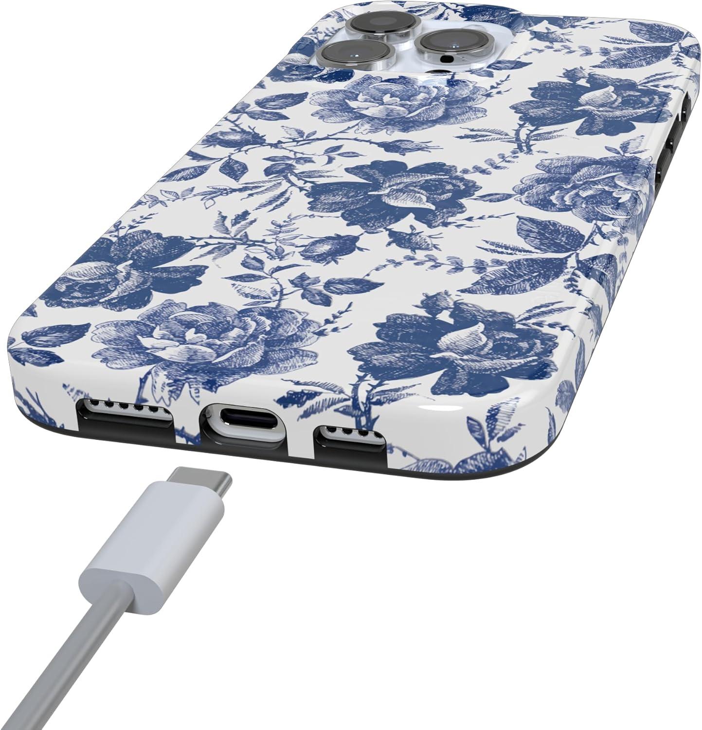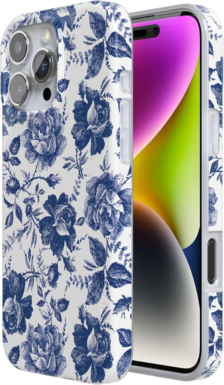 Casely iPhone 16 Pro Max Case | Garden Party | Mushroom Floral | Compatible with MagSafe | Classic Ultra Slim Design(Rose to Fame | Blue & White Rose Floral)