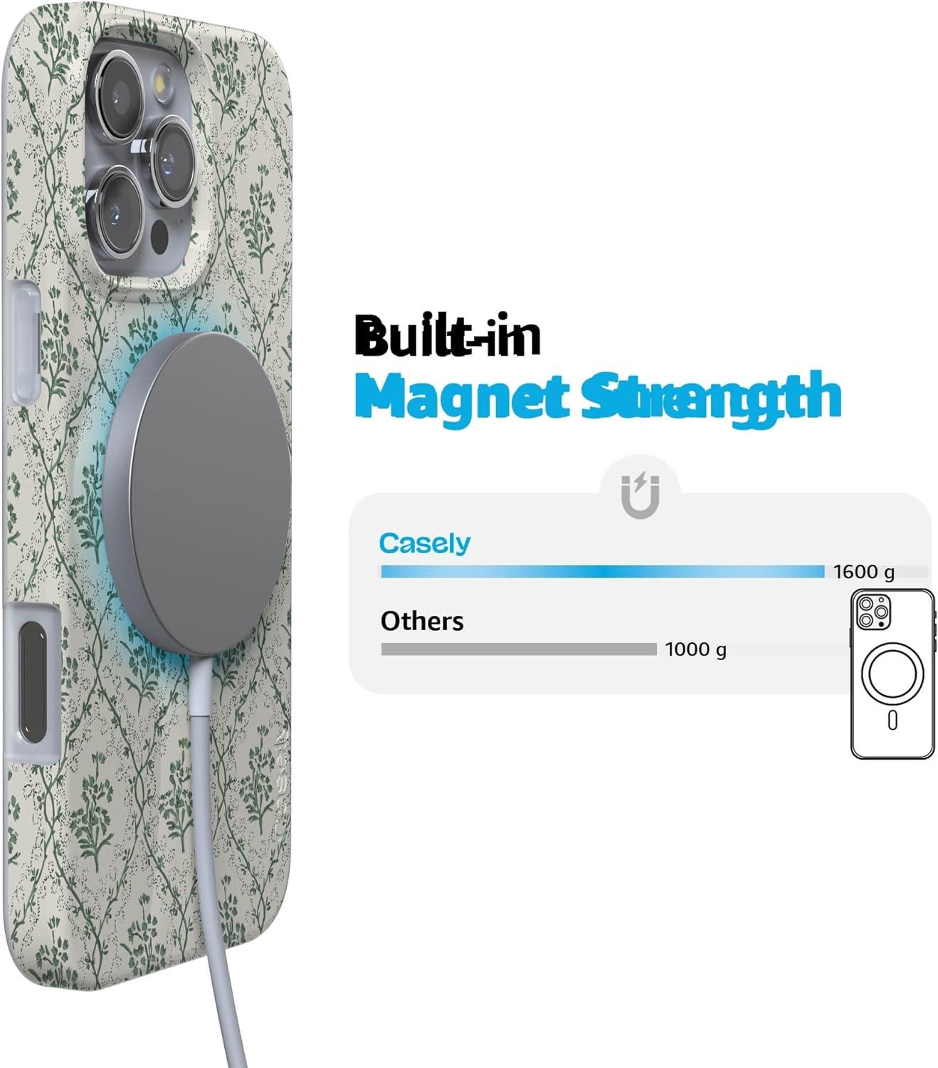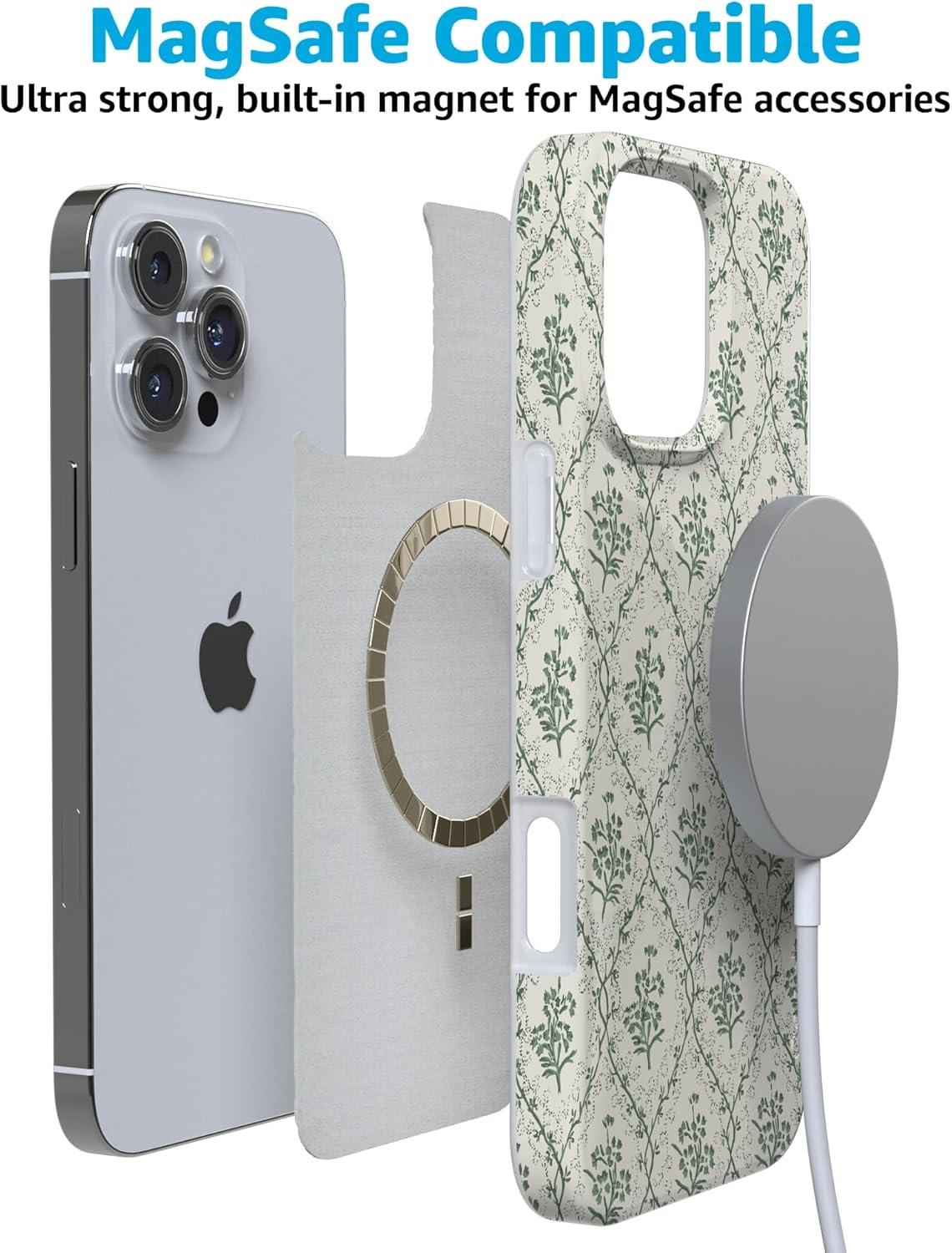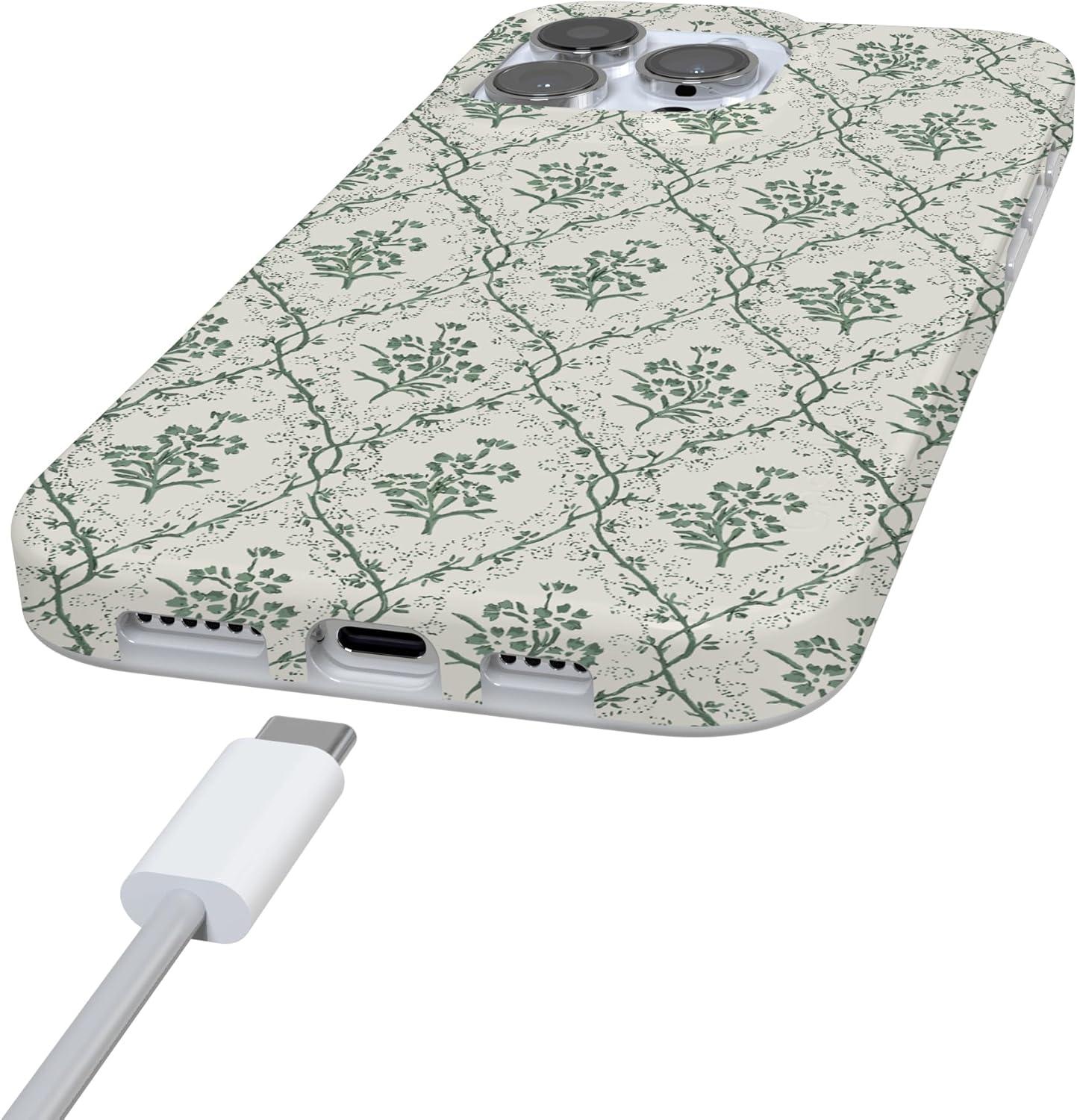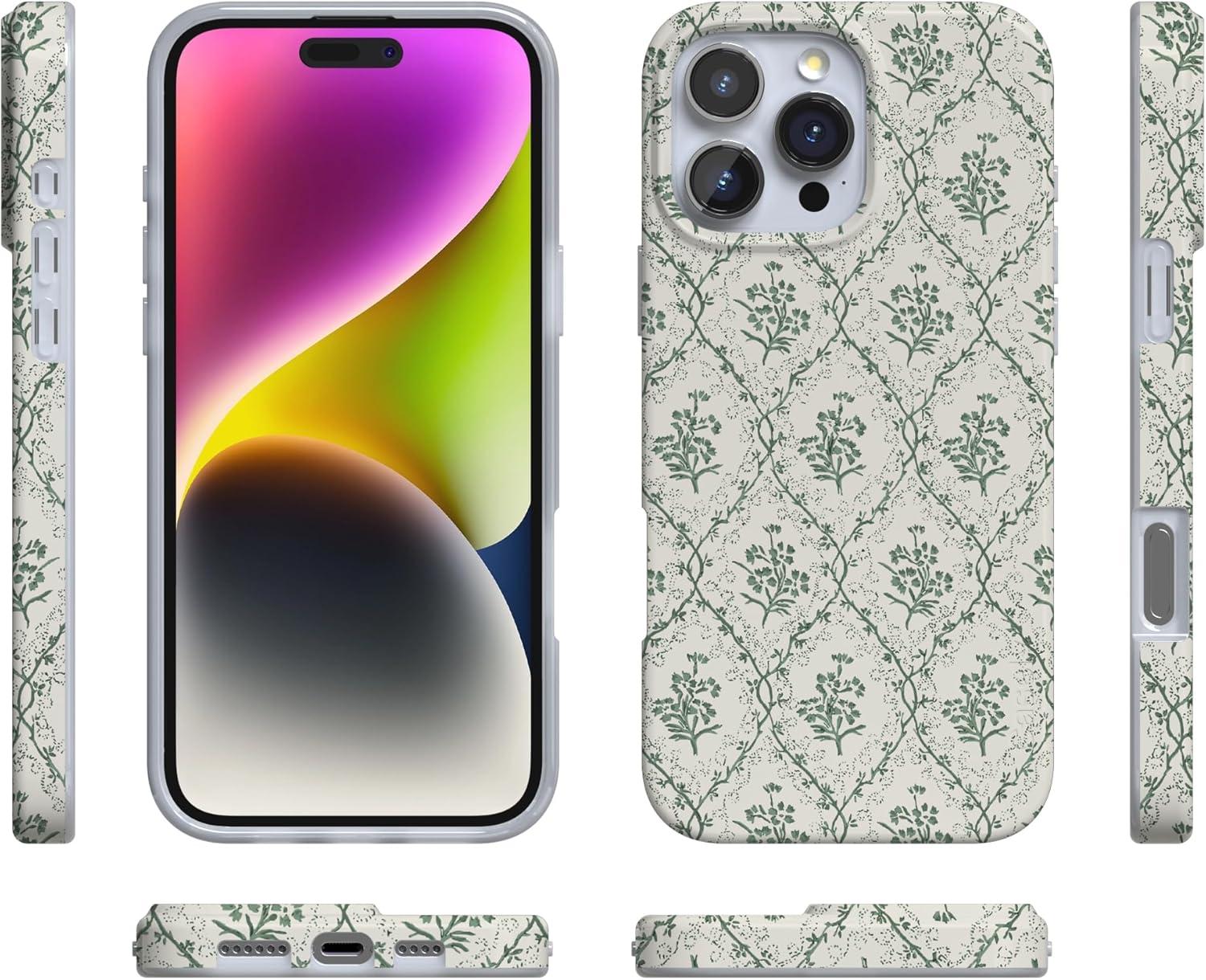 Casely iPhone 16 Pro Max Case | Garden Party | Mushroom Floral | Compatible with MagSafe | Classic Ultra Slim Design(Sage Tapestry | Floral Vines)