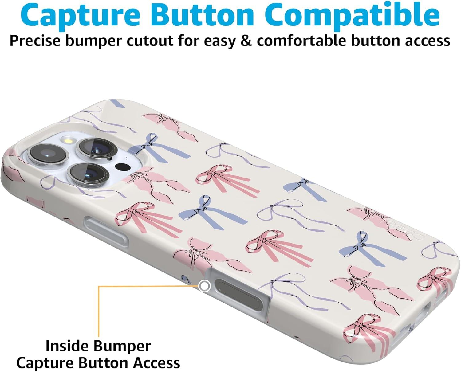 Casely iPhone 16 Pro Max Case | Into The Wild | White Snow Leopard | Compatible with MagSafe | Classic Ultra Thin Design(Coquette Girlie | Pastel Bows)