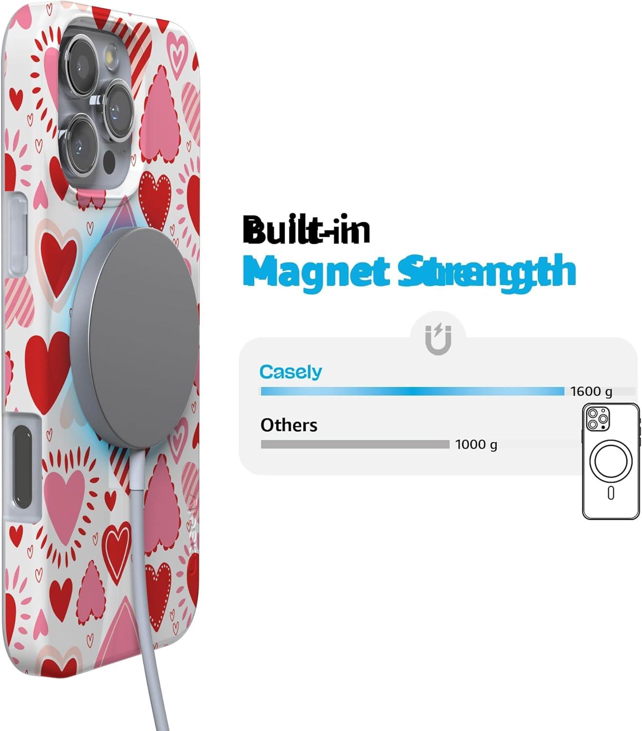 Casely iPhone 16 Pro Max Case | Into The Wild | White Snow Leopard | Compatible with MagSafe | Classic Ultra Thin Design(Love Struck | Heart Stickers)