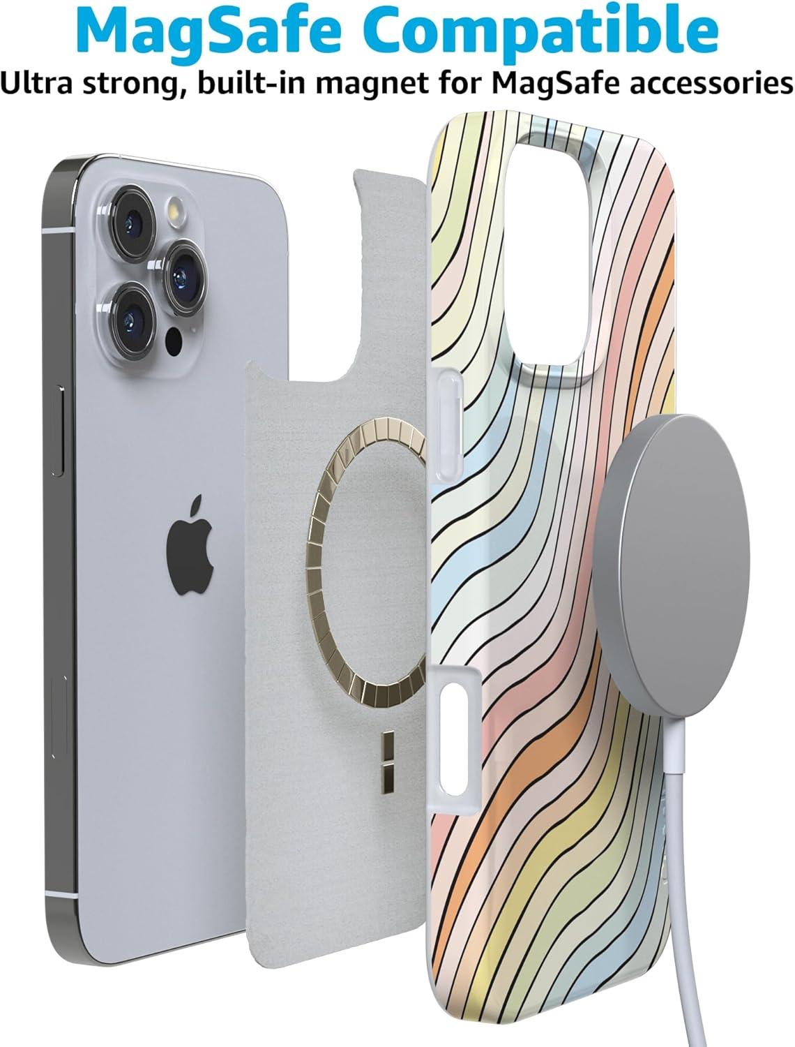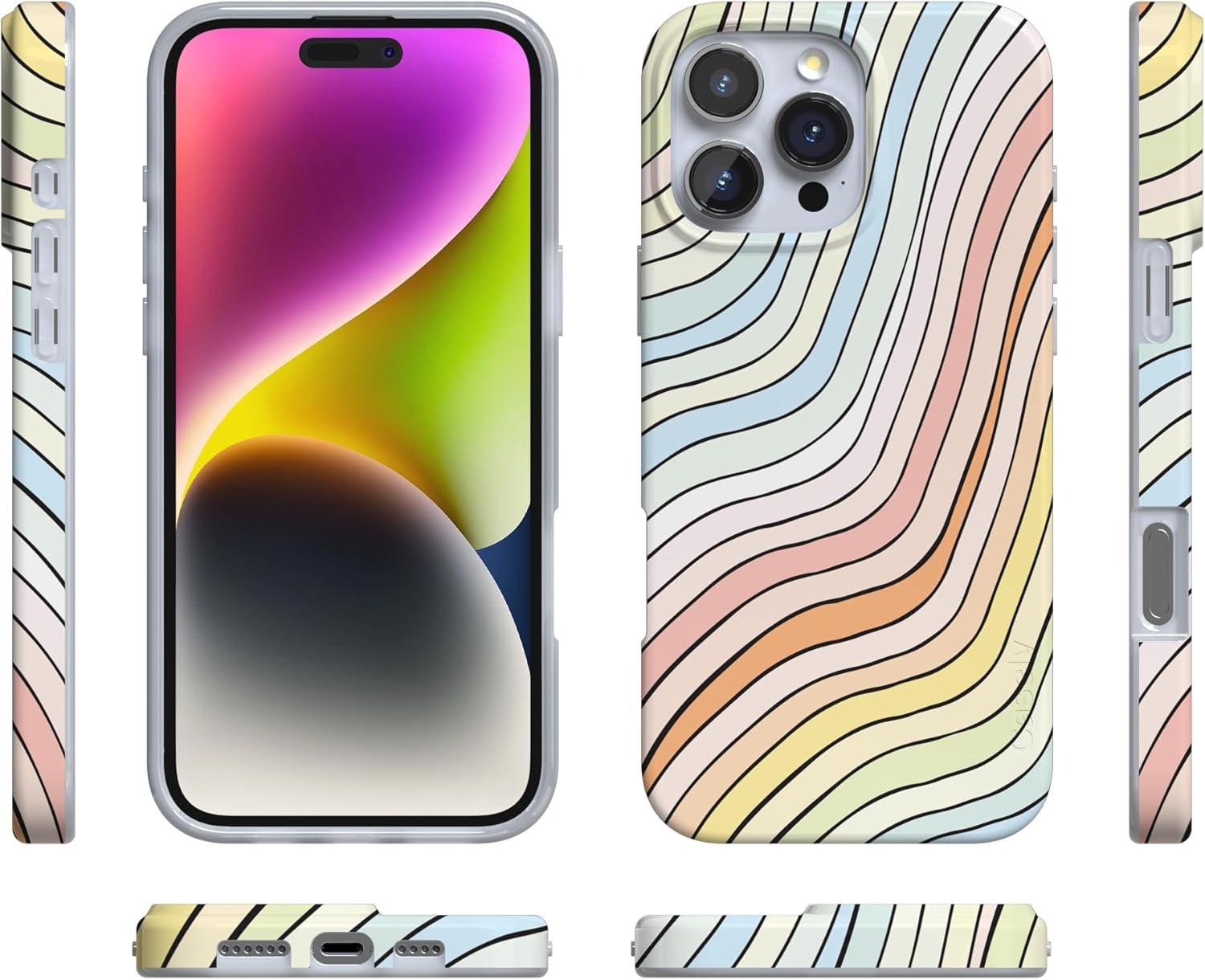 Casely iPhone 16 Pro Max Case | Into The Wild | White Snow Leopard | Compatible with MagSafe | Classic Ultra Thin Design(Ride The Wave | Pastel Rainbow Lined)