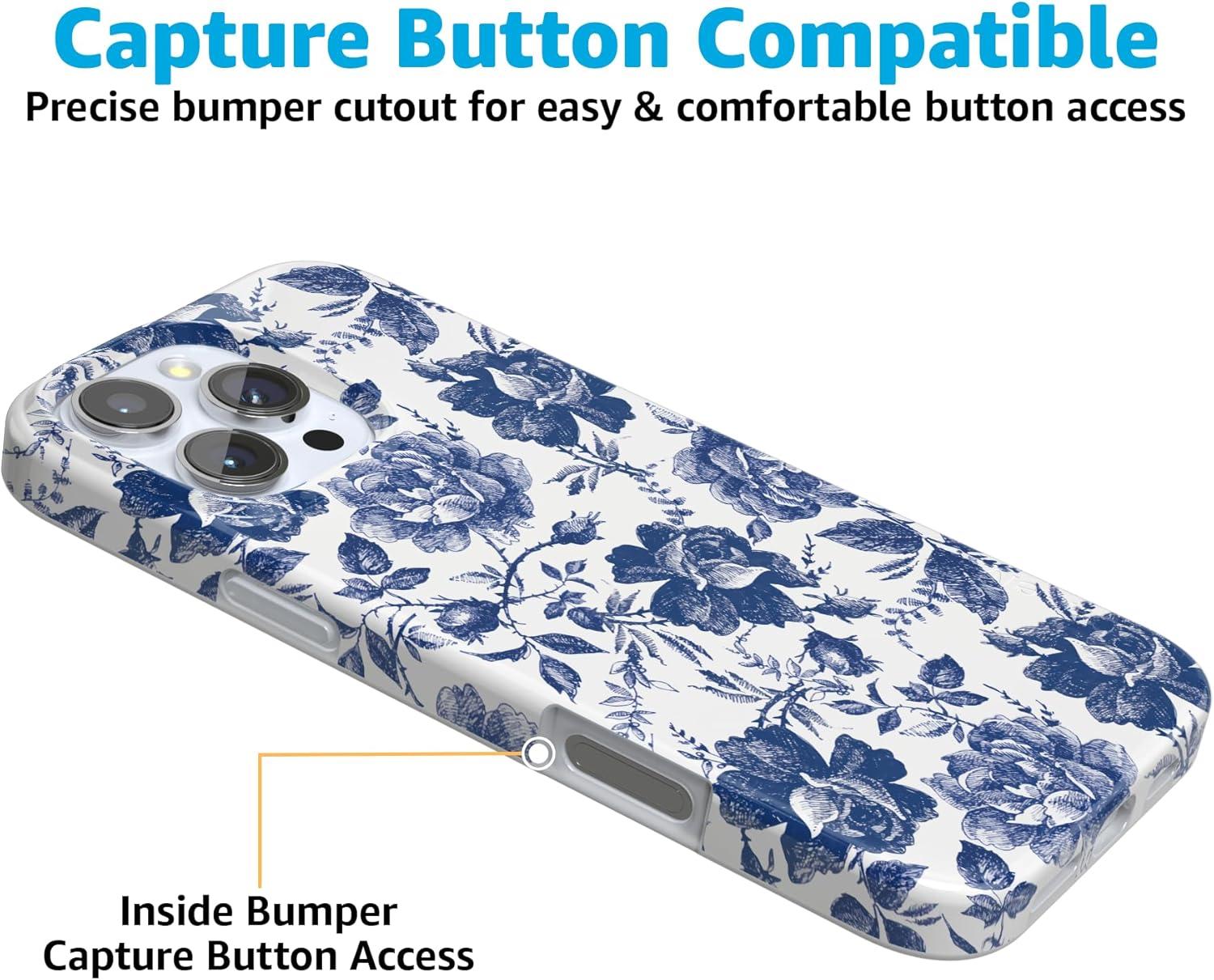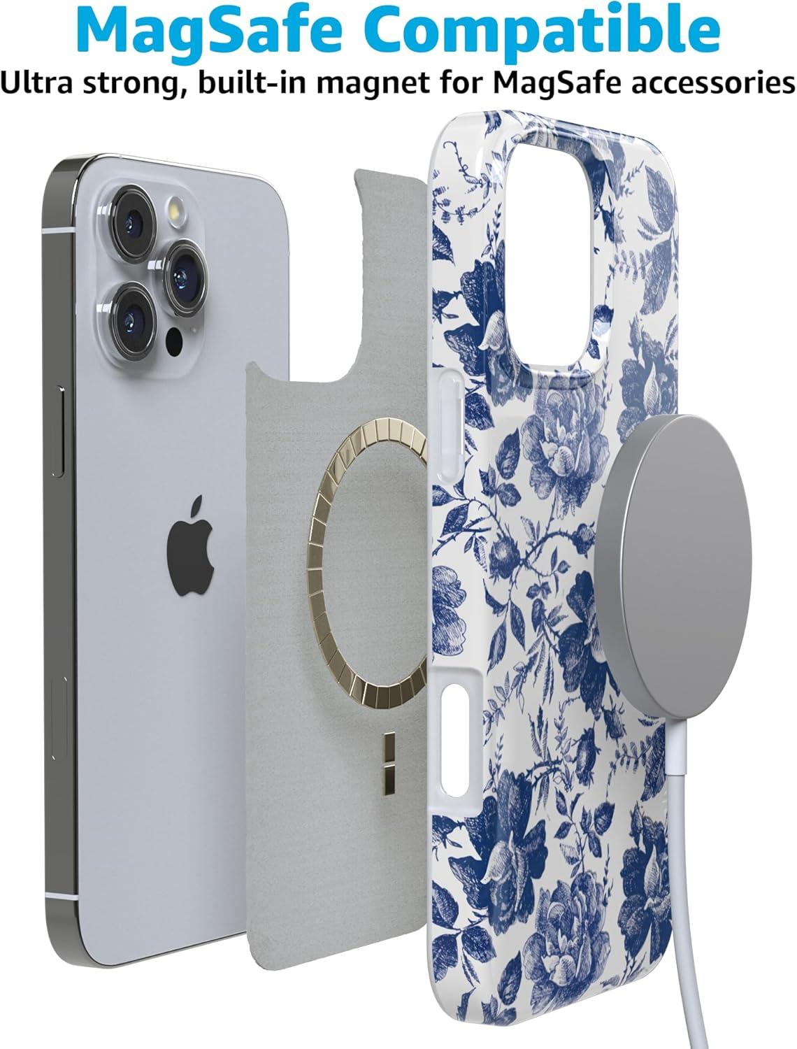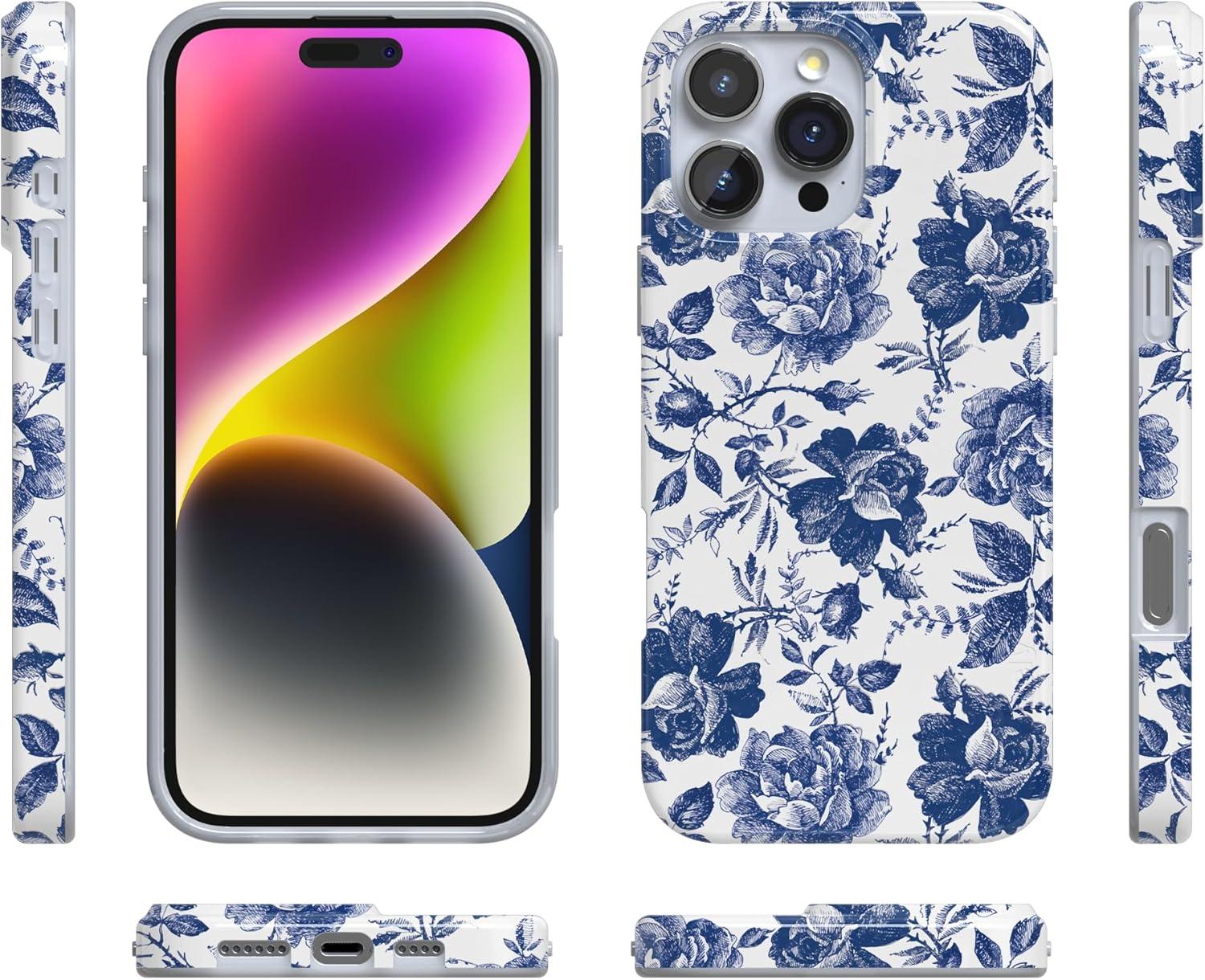 Casely iPhone 16 Pro Max Case | Into The Wild | White Snow Leopard | Compatible with MagSafe | Classic Ultra Thin Design(Rose to Fame | Blue & White Rose Floral)