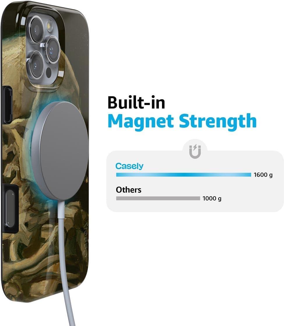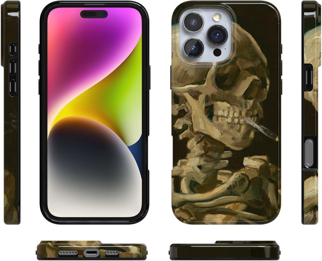 Casely iPhone 16 Pro Max Case | Into The Wild | White Snow Leopard | Compatible with MagSafe | Classic Ultra Thin Design(Van Gogh | Skull of a Skeleton with Burning Cig)