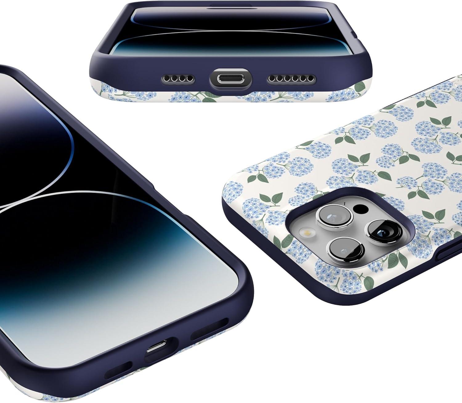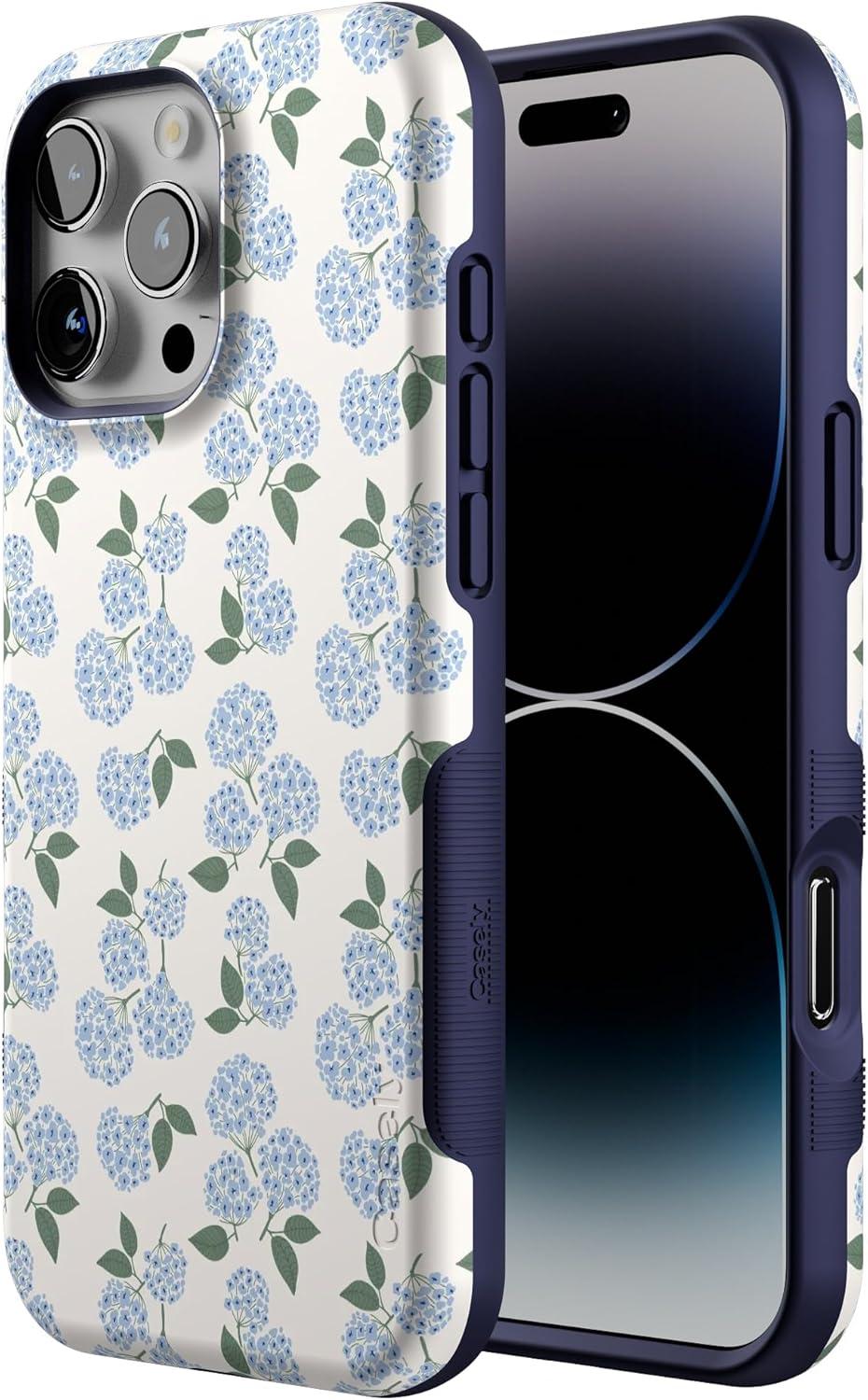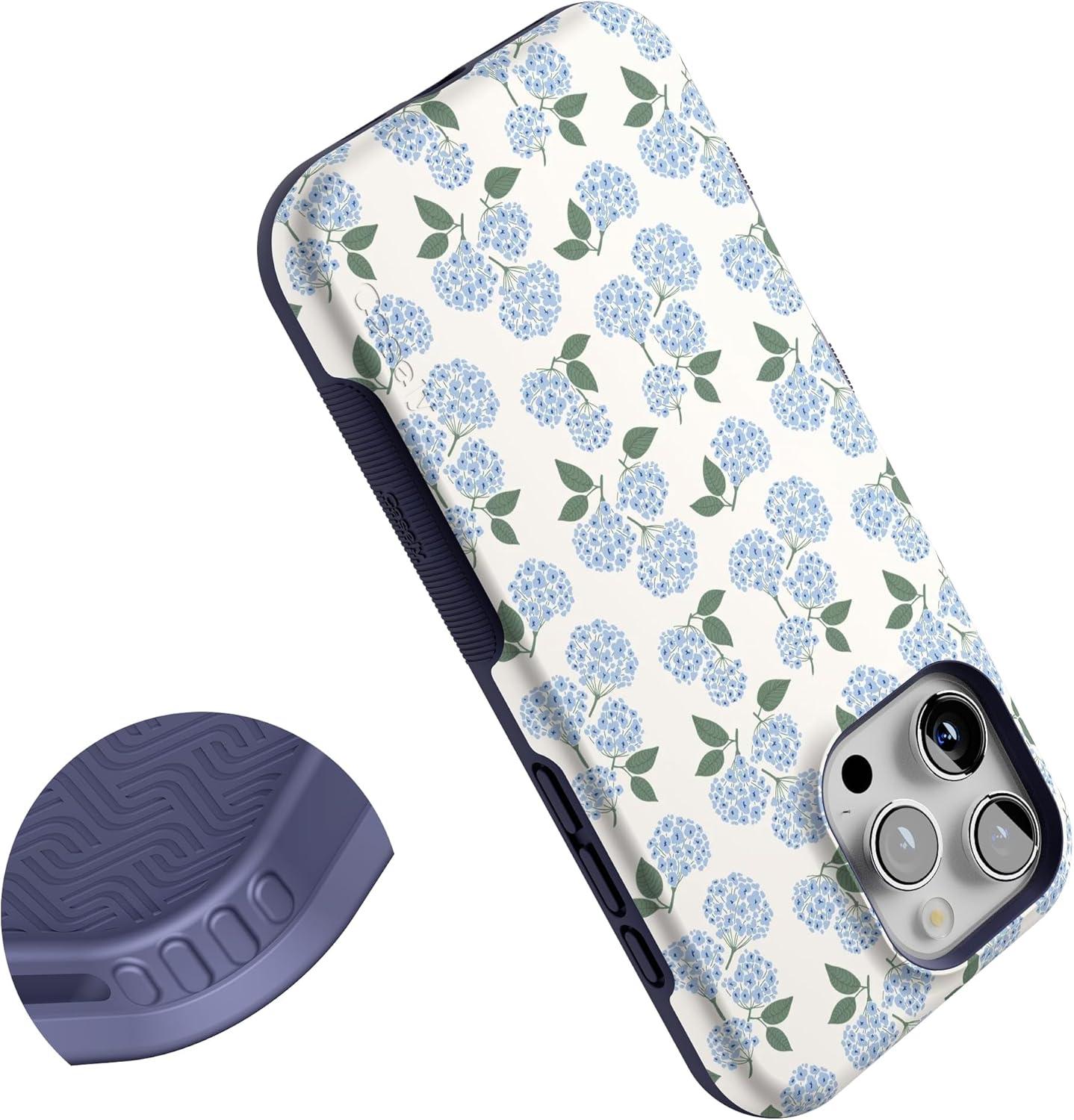 Casely iPhone 16 Pro Max Case | Painted Flowers | Frida Kahlo Floral | Bold Protective Design | Compatible with MagSafe(Blue Hydrangea | Nantucket Cottage)