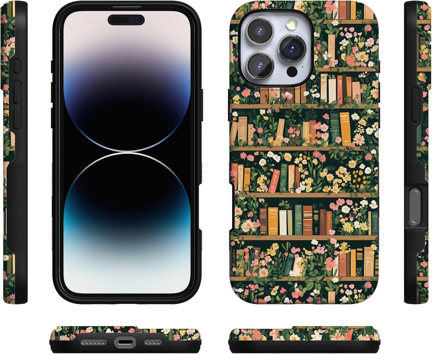 Casely iPhone 16 Pro Max Case | Painted Flowers | Frida Kahlo Floral | Bold Protective Design | Compatible with MagSafe(Book Nook | Floral Library)