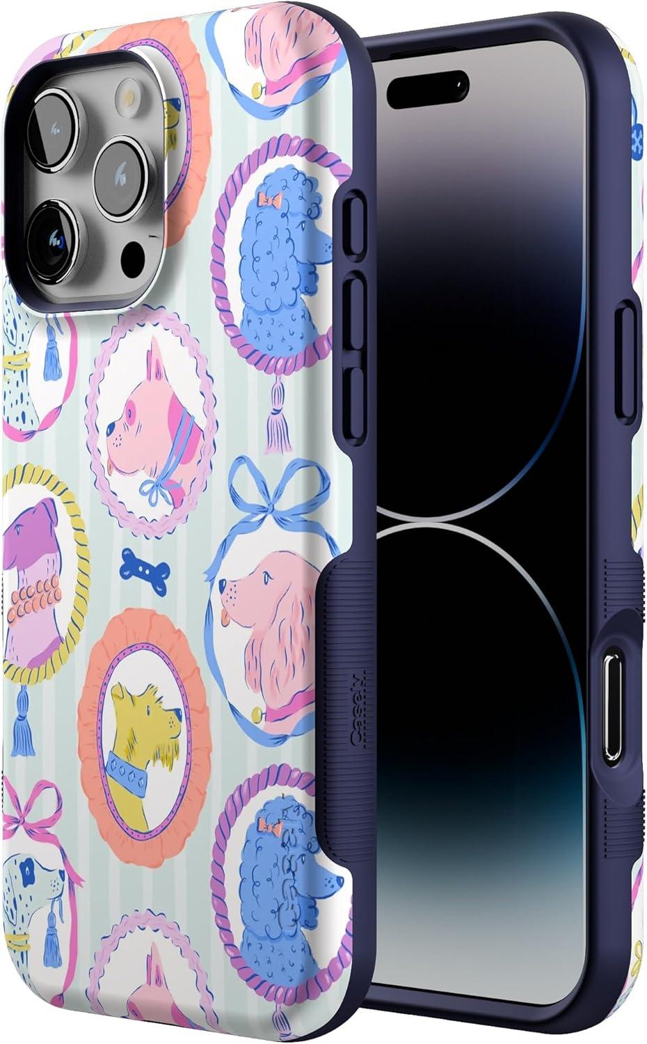 Casely iPhone 16 Pro Max Case | Painted Flowers | Frida Kahlo Floral | Bold Protective Design | Compatible with MagSafe(Chateau Pups | French Dog)