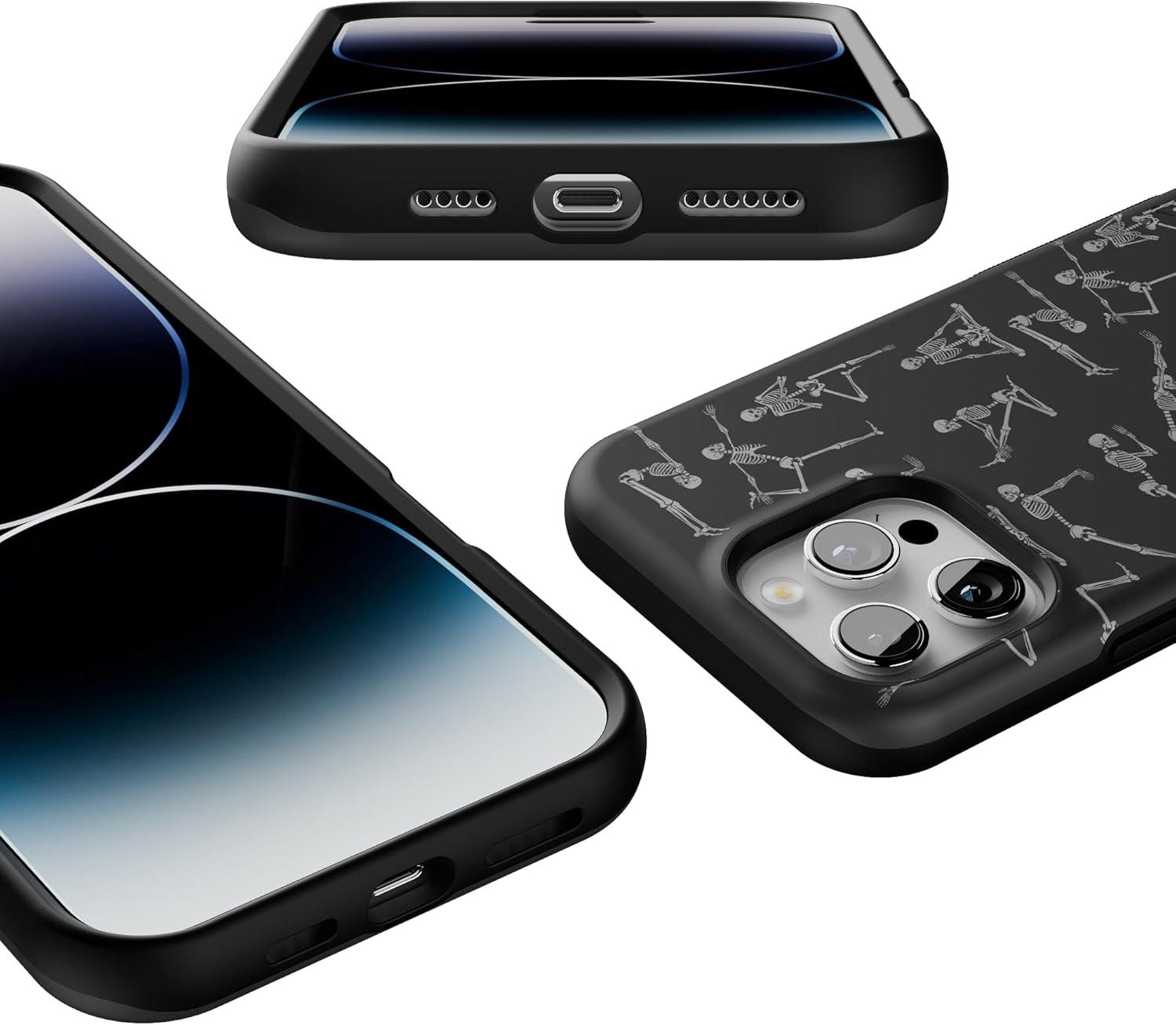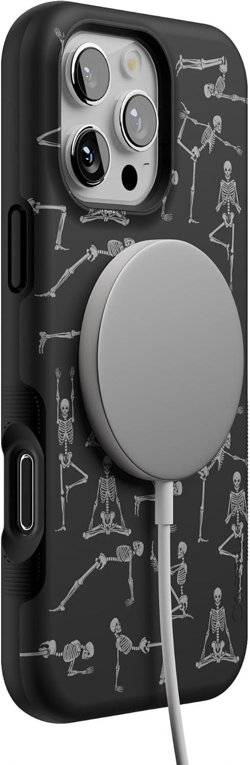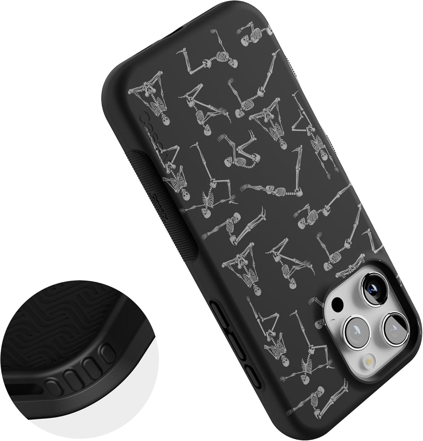 Casely iPhone 16 Pro Max Case | Painted Flowers | Frida Kahlo Floral | Bold Protective Design | Compatible with MagSafe(Corpse Pose | Skeleton Yoga)