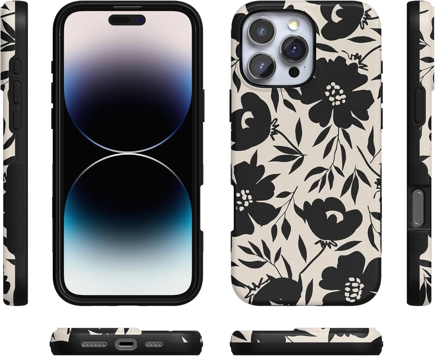 Casely iPhone 16 Pro Max Case | Painted Flowers | Frida Kahlo Floral | Bold Protective Design | Compatible with MagSafe(Dark Fantasy | Contrast Floral)
