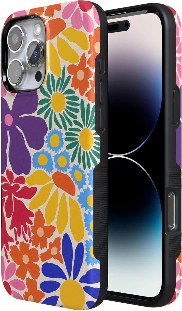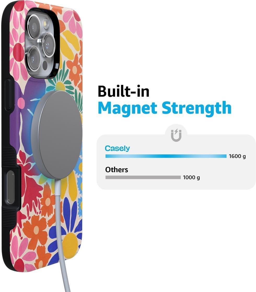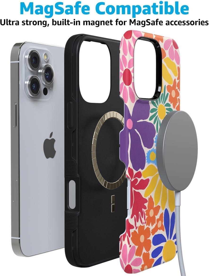 Casely iPhone 16 Pro Max Case | Painted Flowers | Frida Kahlo Floral | Bold Protective Design | Compatible with MagSafe(Flower Patch | Multi-Color Floral)