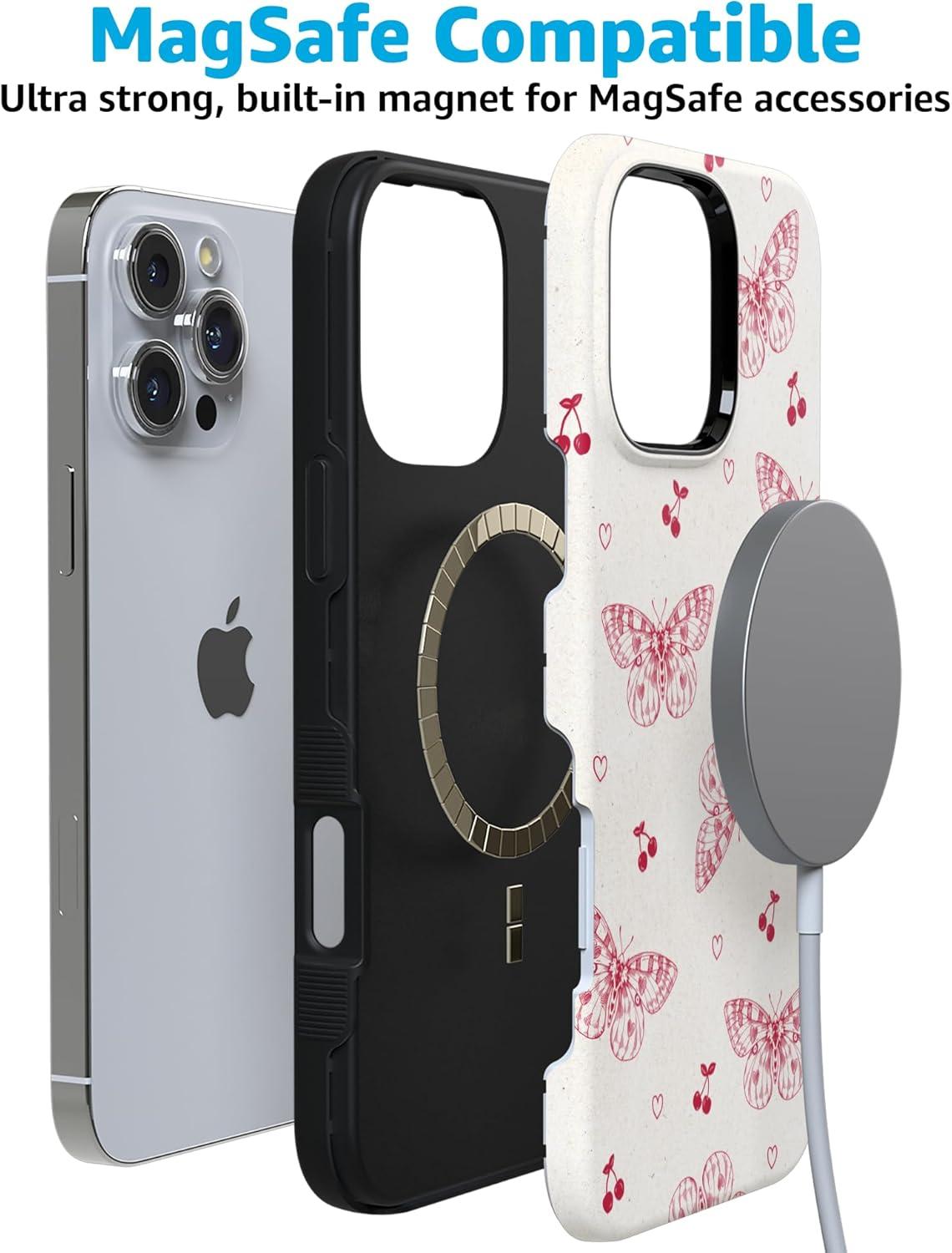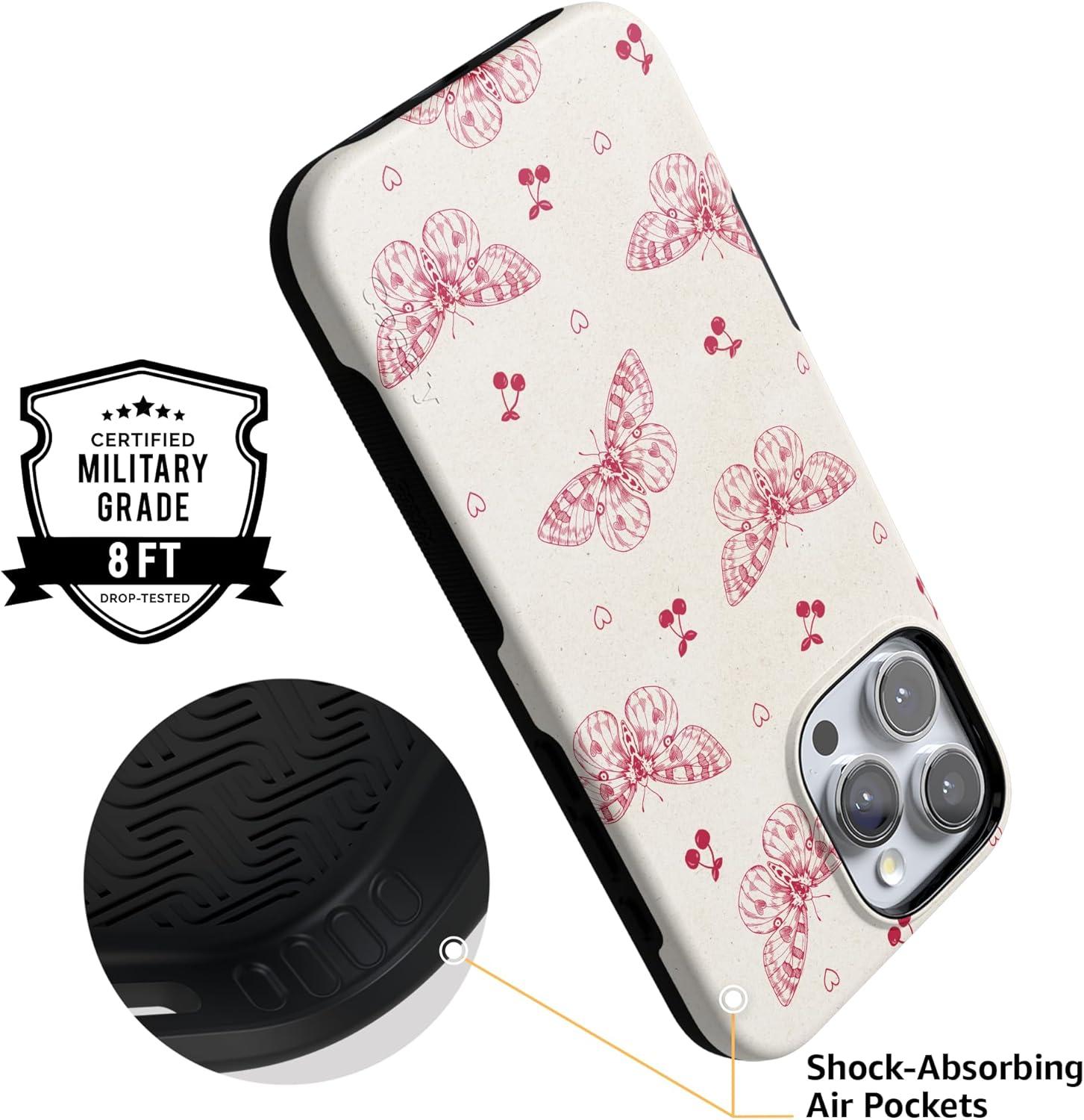 Casely iPhone 16 Pro Max Case | Painted Flowers | Frida Kahlo Floral | Bold Protective Design | Compatible with MagSafe(Heart Flutters | Butterfly)
