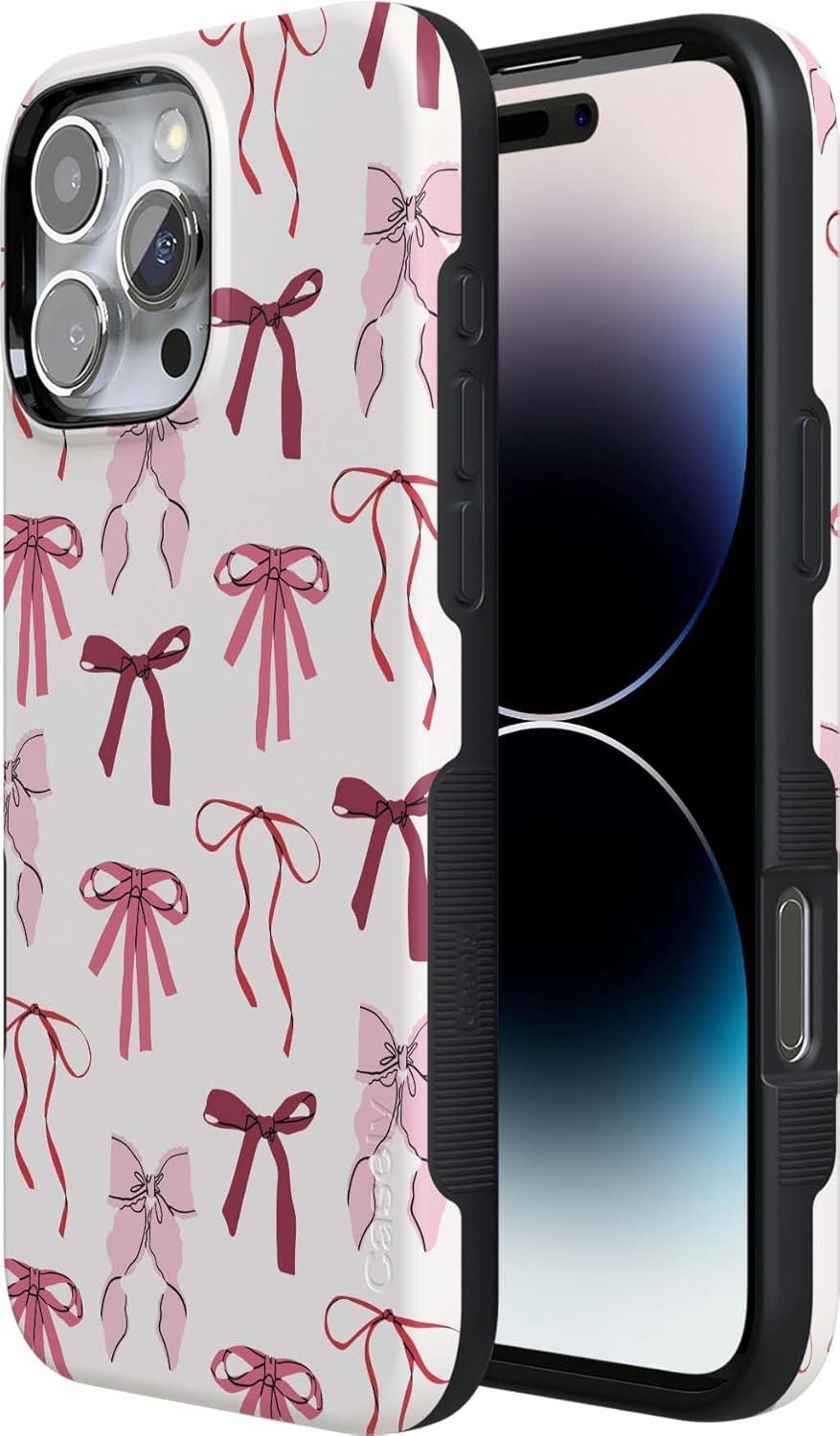 Casely iPhone 16 Pro Max Case | Painted Flowers | Frida Kahlo Floral | Bold Protective Design | Compatible with MagSafe(Lover Girlie | Pink Bows)