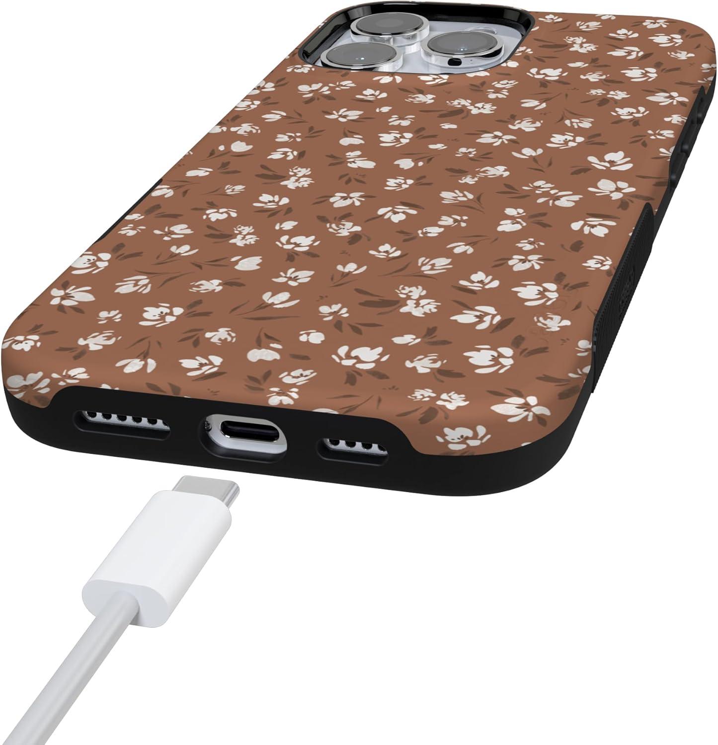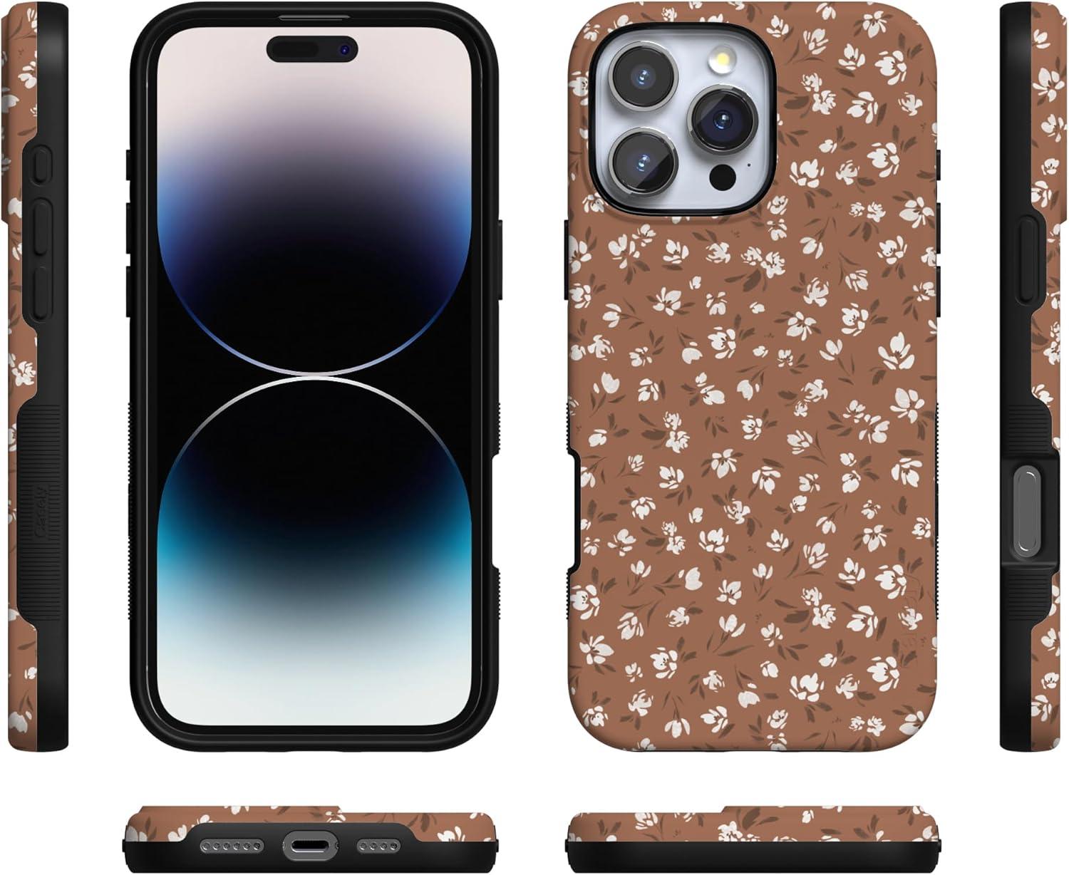 Casely iPhone 16 Pro Max Case | Painted Flowers | Frida Kahlo Floral | Bold Protective Design | Compatible with MagSafe(Mocha Meadow | Tiny Flowers)