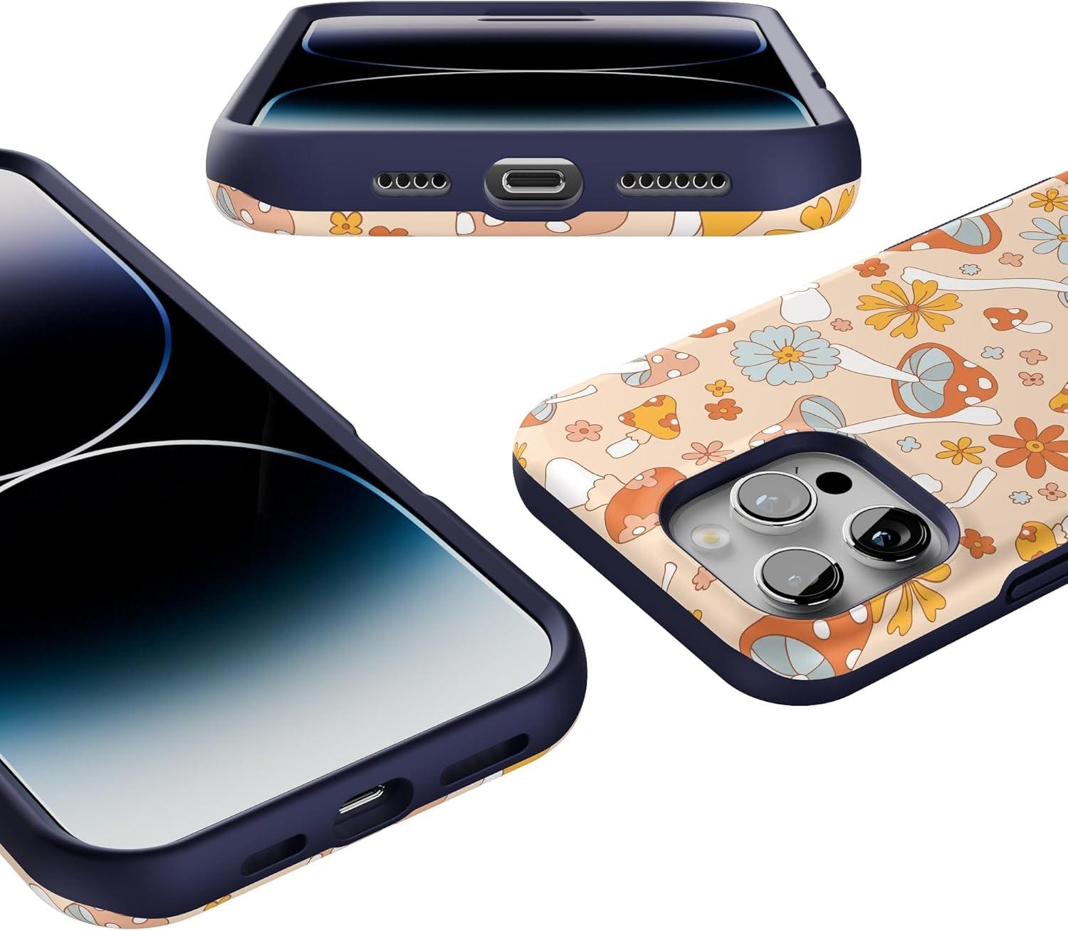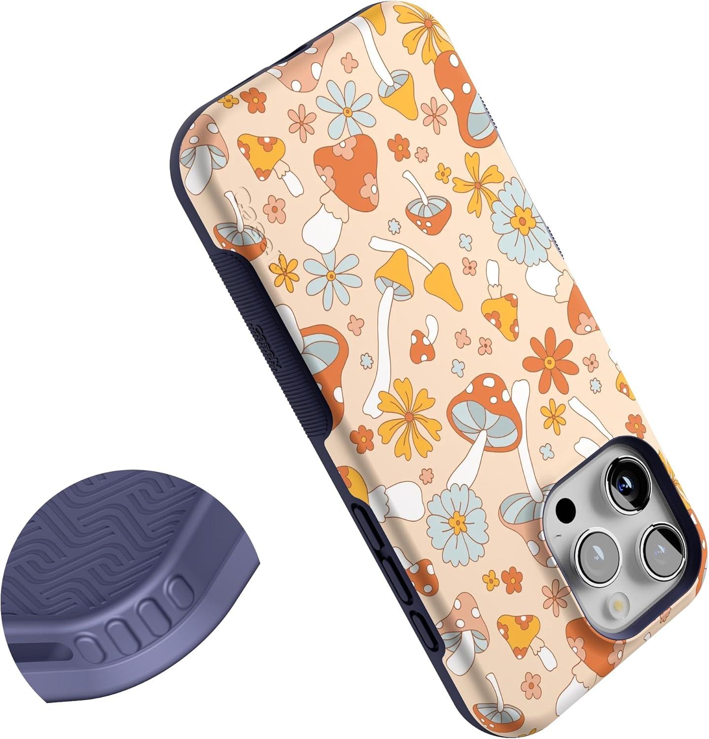 Casely iPhone 16 Pro Max Case | Painted Flowers | Frida Kahlo Floral | Bold Protective Design | Compatible with MagSafe(Mushroom Magic | Retro Floral)