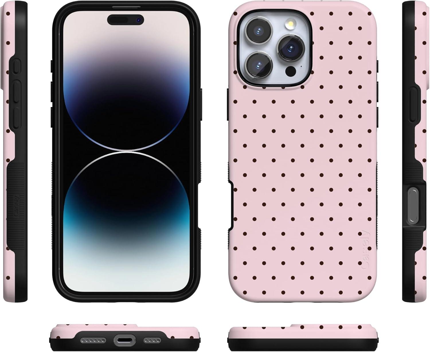 Casely iPhone 16 Pro Max Case | Painted Flowers | Frida Kahlo Floral | Bold Protective Design | Compatible with MagSafe(On the Dot | Pink Polka Dot)