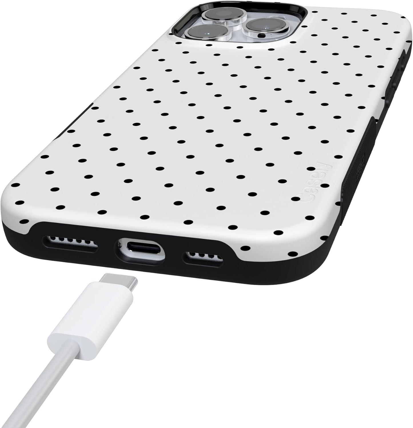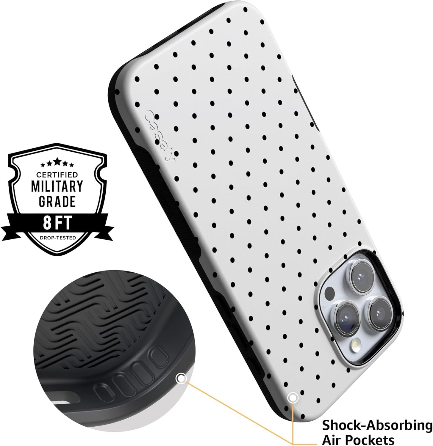 Casely iPhone 16 Pro Max Case | Painted Flowers | Frida Kahlo Floral | Bold Protective Design | Compatible with MagSafe(On the Dot | White Polka Dot)