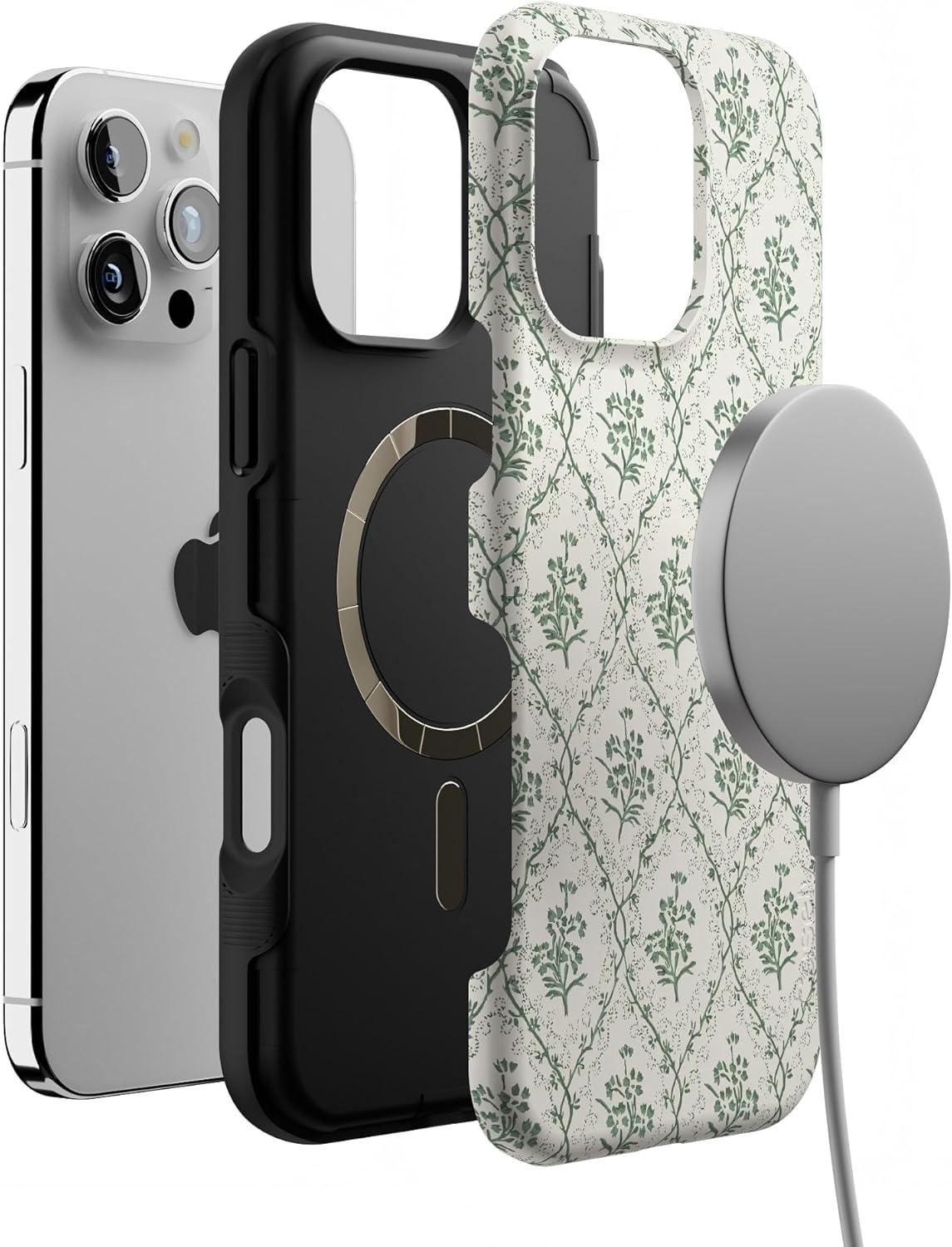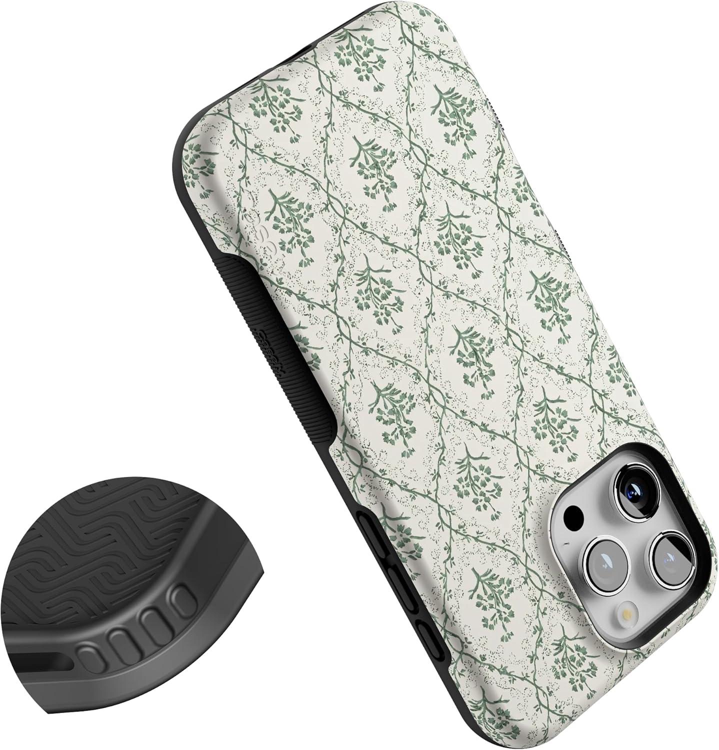 Casely iPhone 16 Pro Max Case | Painted Flowers | Frida Kahlo Floral | Bold Protective Design | Compatible with MagSafe(Sage Tapestry | Floral Vines)