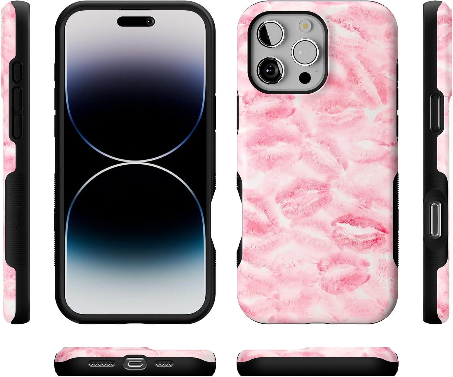 Casely iPhone 16 Pro Max Case | Painted Flowers | Frida Kahlo Floral | Bold Protective Design | Compatible with MagSafe(Sealed with a Kiss | Pink Lipstick)