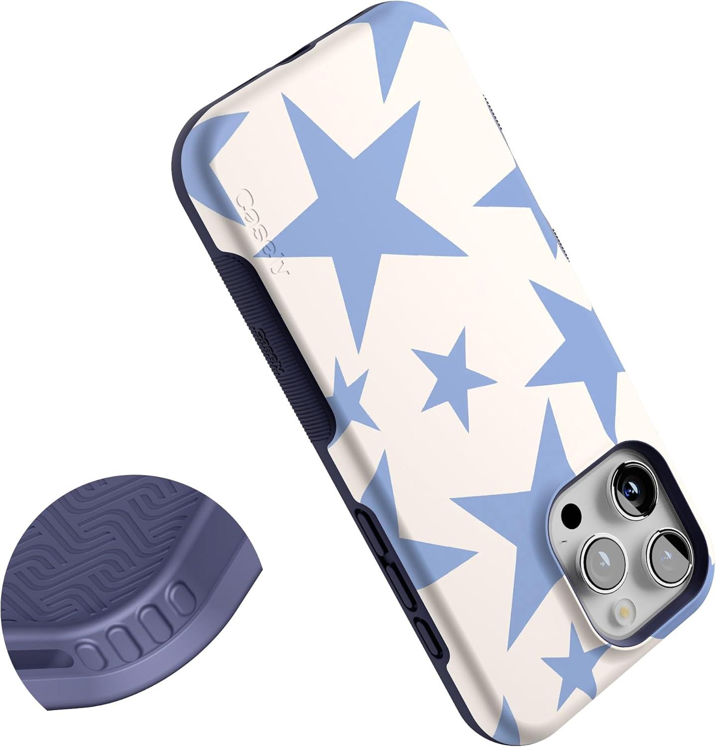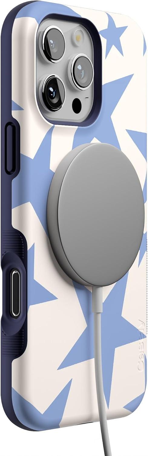 Casely iPhone 16 Pro Max Case | Painted Flowers | Frida Kahlo Floral | Bold Protective Design | Compatible with MagSafe(Stars Align | Blue & White Stars)