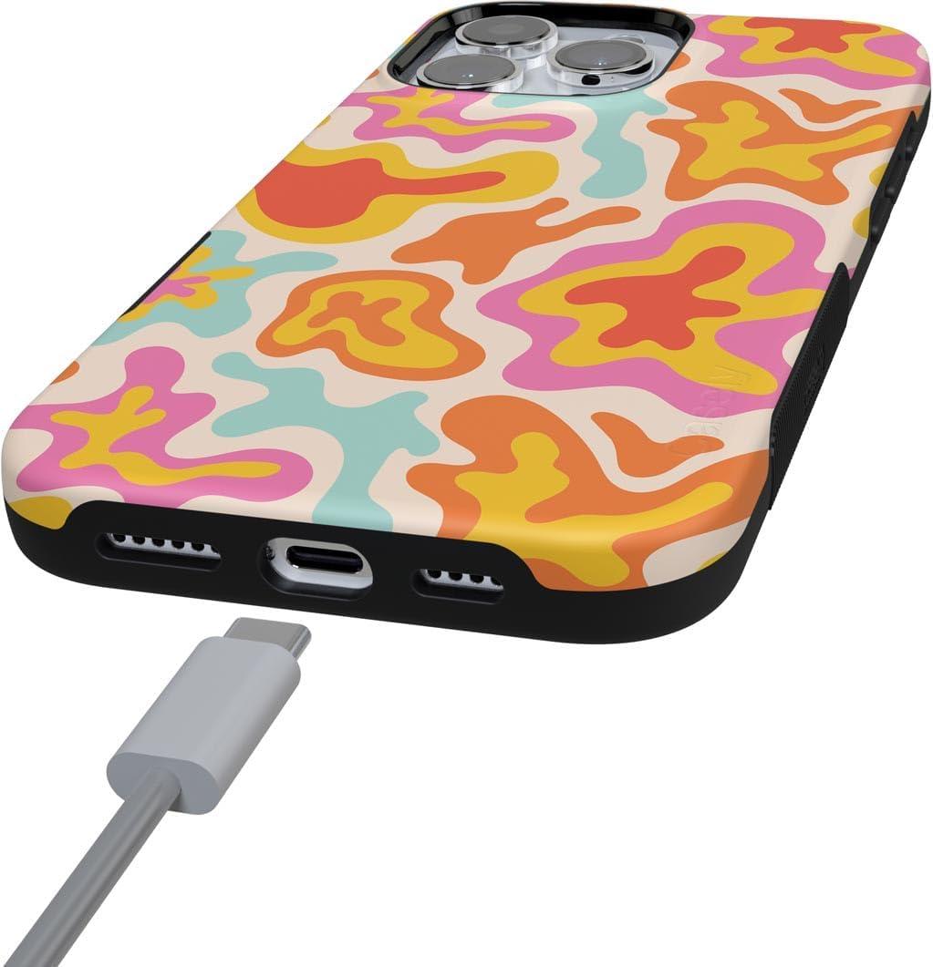 Casely iPhone 16 Pro Max Case | Painted Flowers | Frida Kahlo Floral | Bold Protective Design | Compatible with MagSafe(Tropical Color Splash | Abstract Retro)