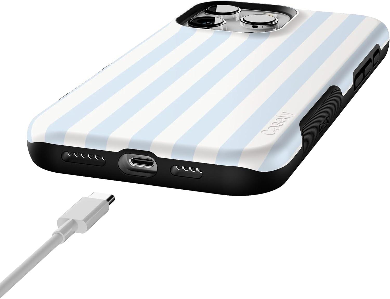 Casely iPhone 16 Pro Max Case | Rustic Roses | Boho Bouquet | Bold Protective Design | Compatible with MagSafe(Blue Stripes | Sunday Best)