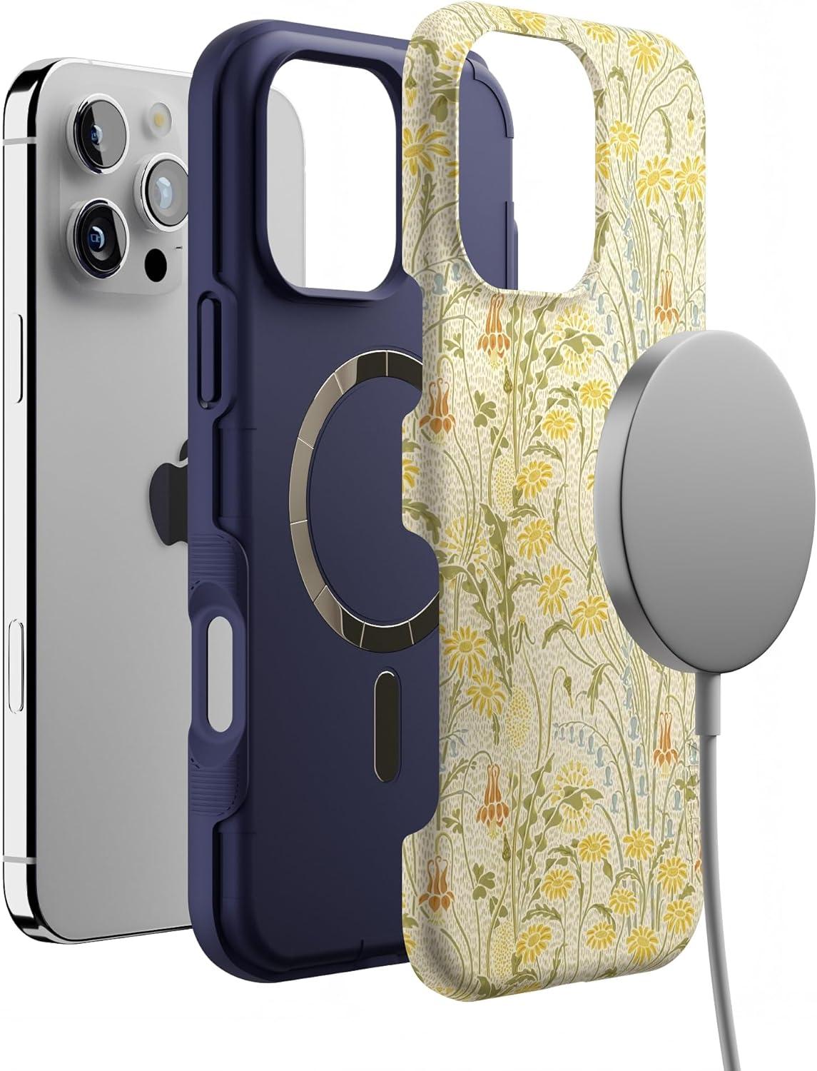 Casely iPhone 16 Pro Max Case | Rustic Roses | Boho Bouquet | Bold Protective Design | Compatible with MagSafe(Boho Blooms | Golden Floral)