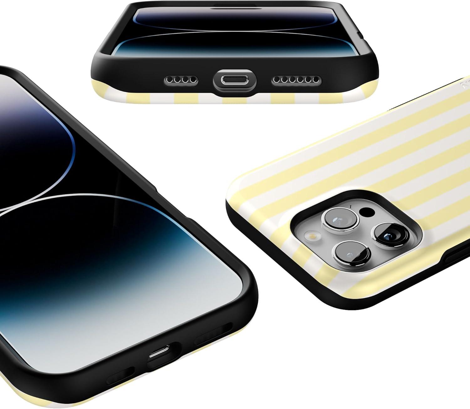 Casely iPhone 16 Pro Max Case | Rustic Roses | Boho Bouquet | Bold Protective Design | Compatible with MagSafe(Butter Yellow Stripes | Sunday Best)