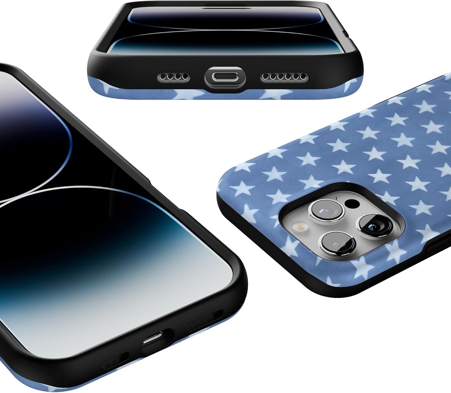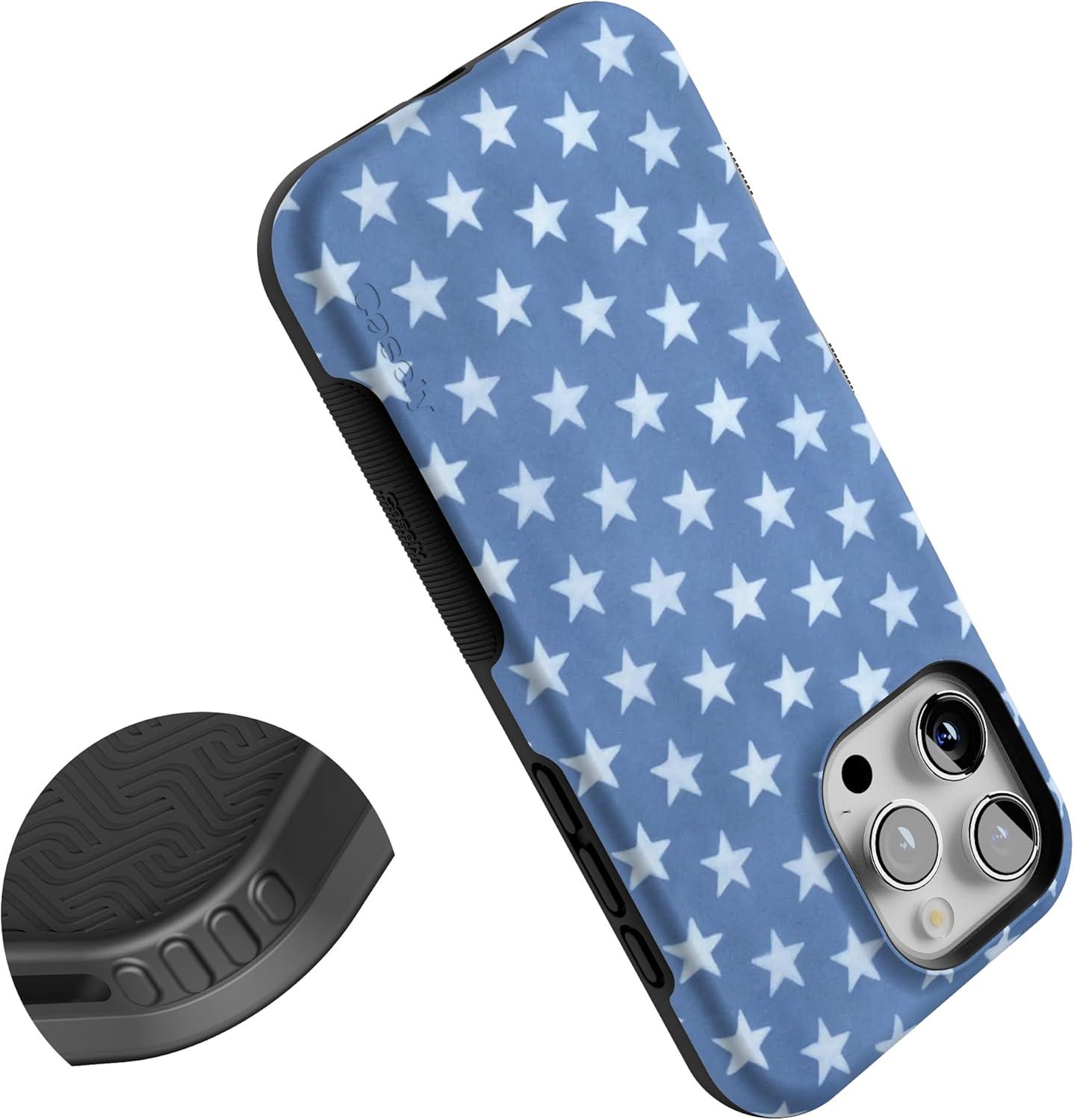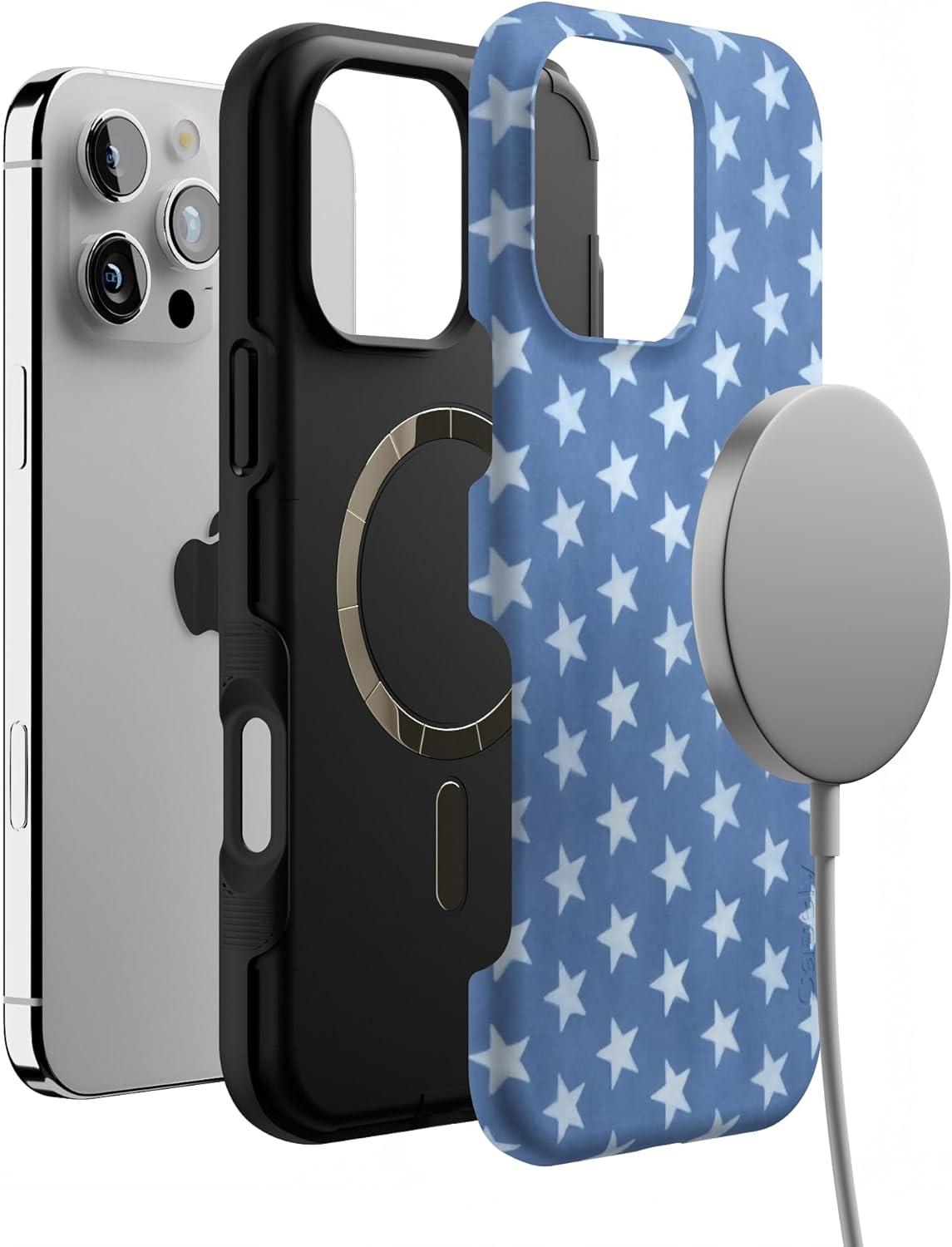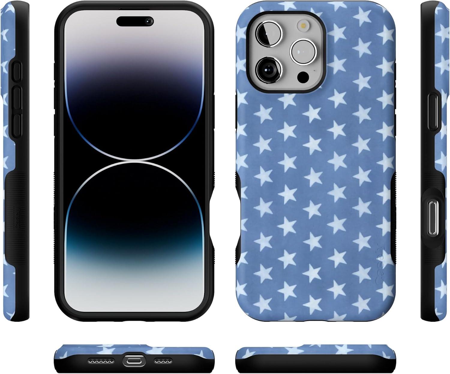 Casely iPhone 16 Pro Max Case | Rustic Roses | Boho Bouquet | Bold Protective Design | Compatible with MagSafe(Coastal Blues | Denim Stars)