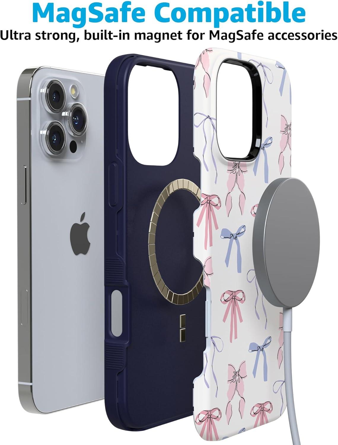 Casely iPhone 16 Pro Max Case | Rustic Roses | Boho Bouquet | Bold Protective Design | Compatible with MagSafe(Coquette Girlie | Pastel Bows)
