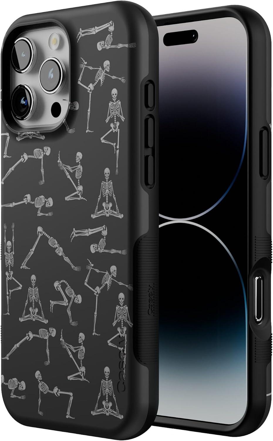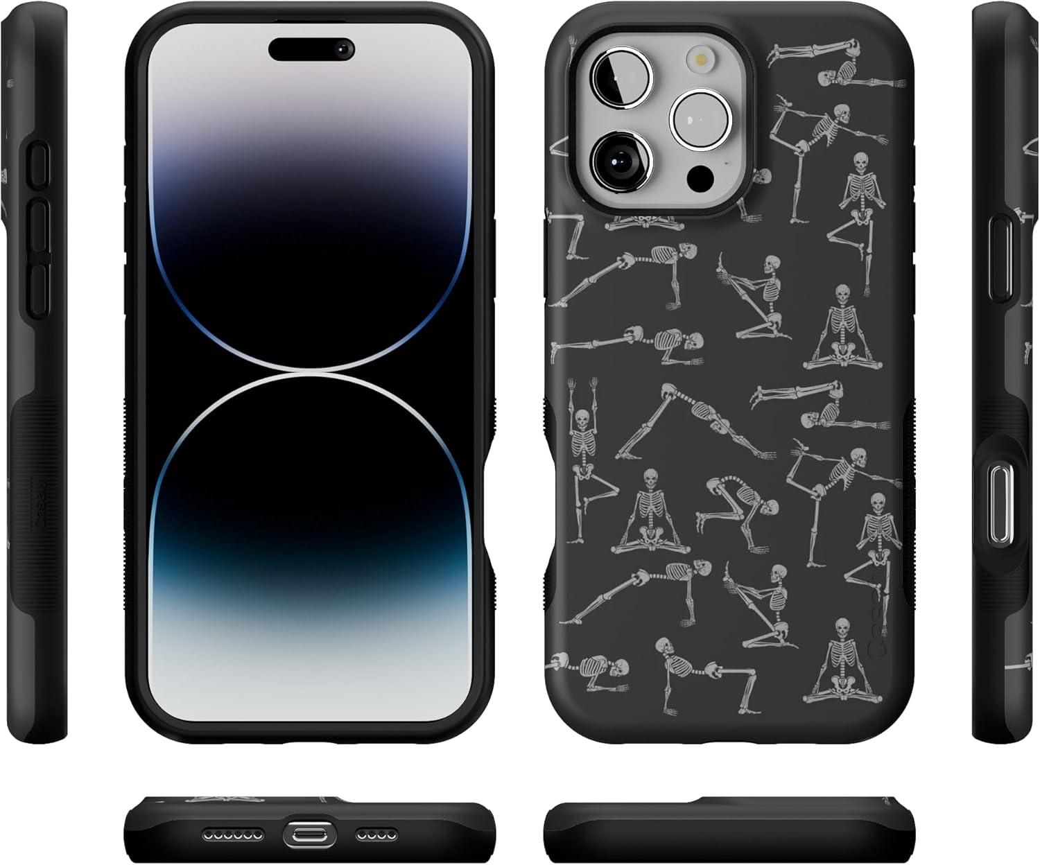 Casely iPhone 16 Pro Max Case | Rustic Roses | Boho Bouquet | Bold Protective Design | Compatible with MagSafe(Corpse Pose | Skeleton Yoga)