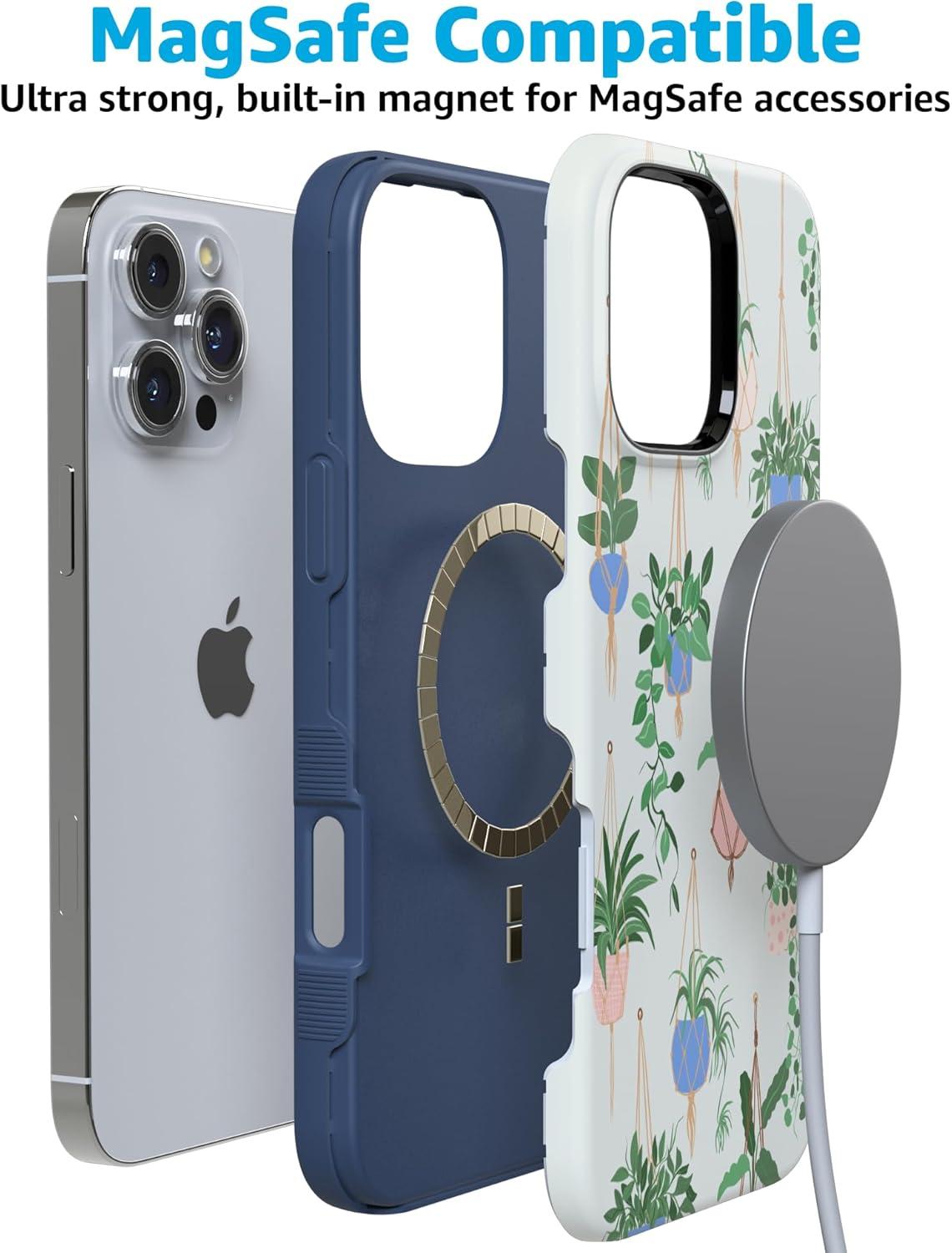 Casely iPhone 16 Pro Max Case | Rustic Roses | Boho Bouquet | Bold Protective Design | Compatible with MagSafe(Hanging Around | Potted Plants Floral)