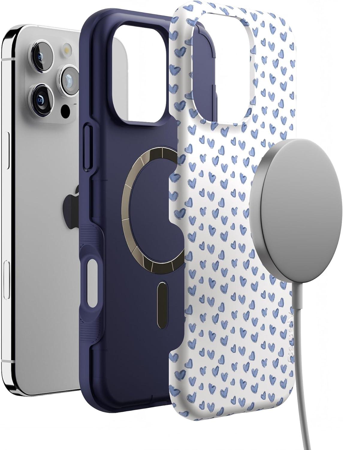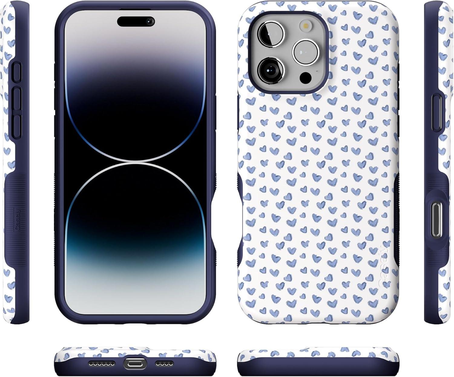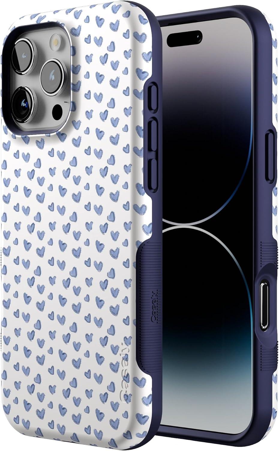 Casely iPhone 16 Pro Max Case | Rustic Roses | Boho Bouquet | Bold Protective Design | Compatible with MagSafe(Lovebug | Blue Hearts)