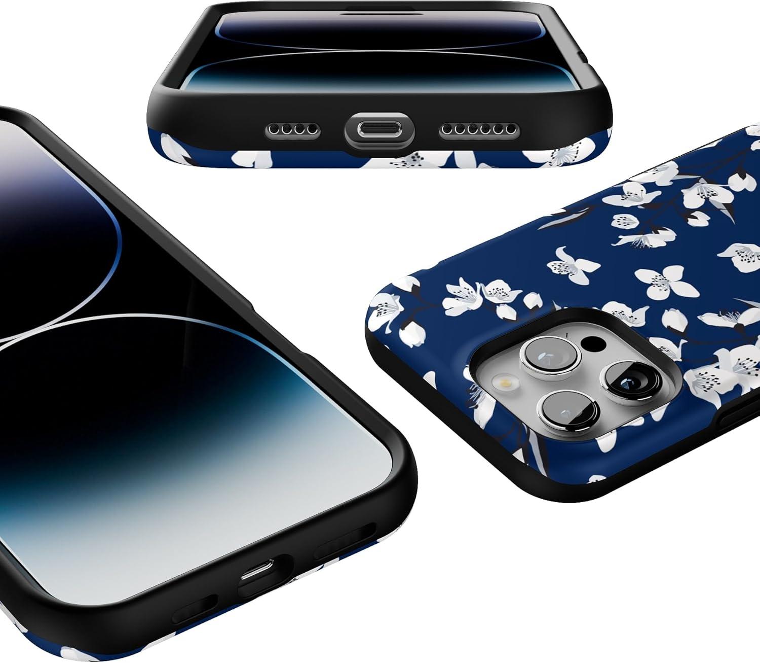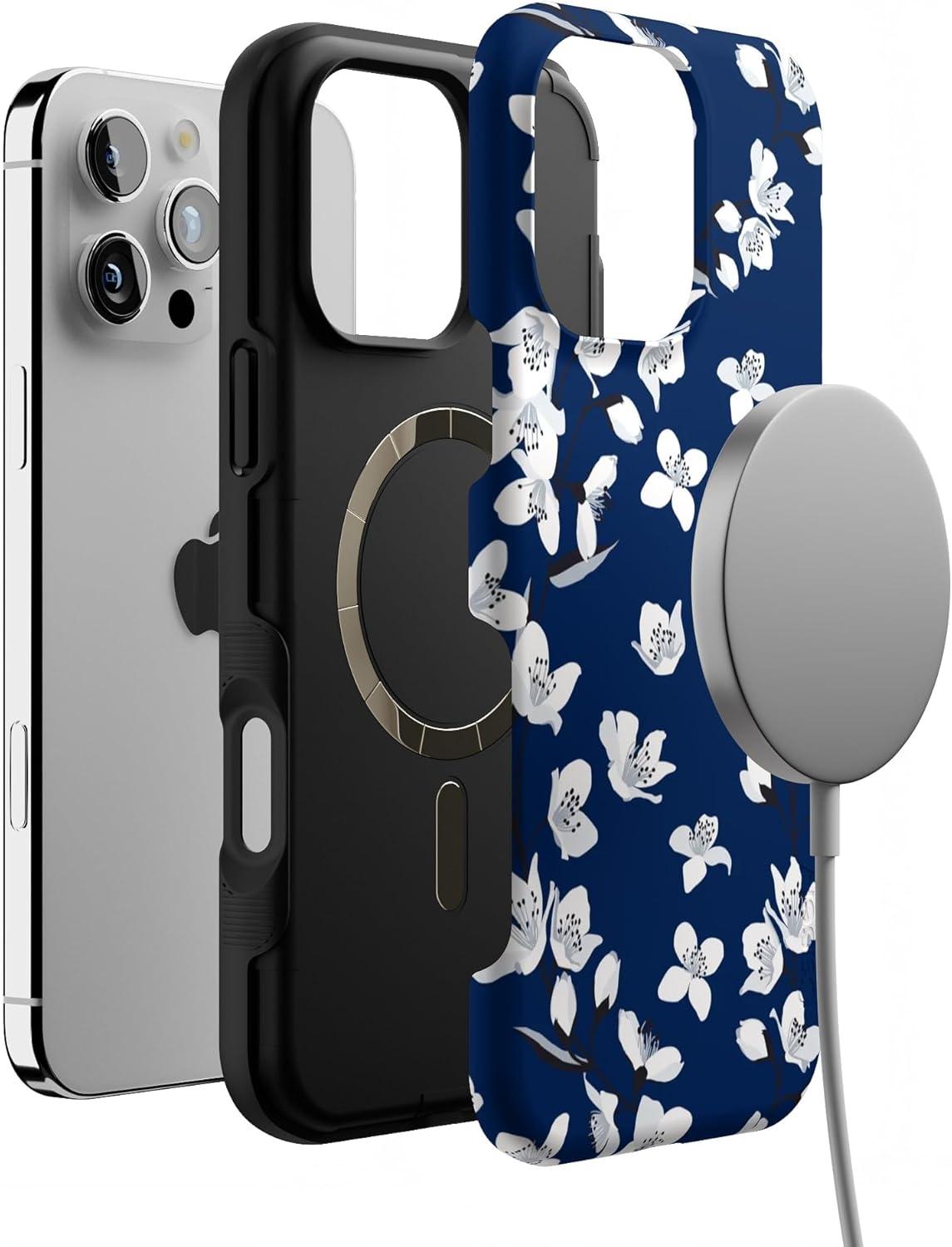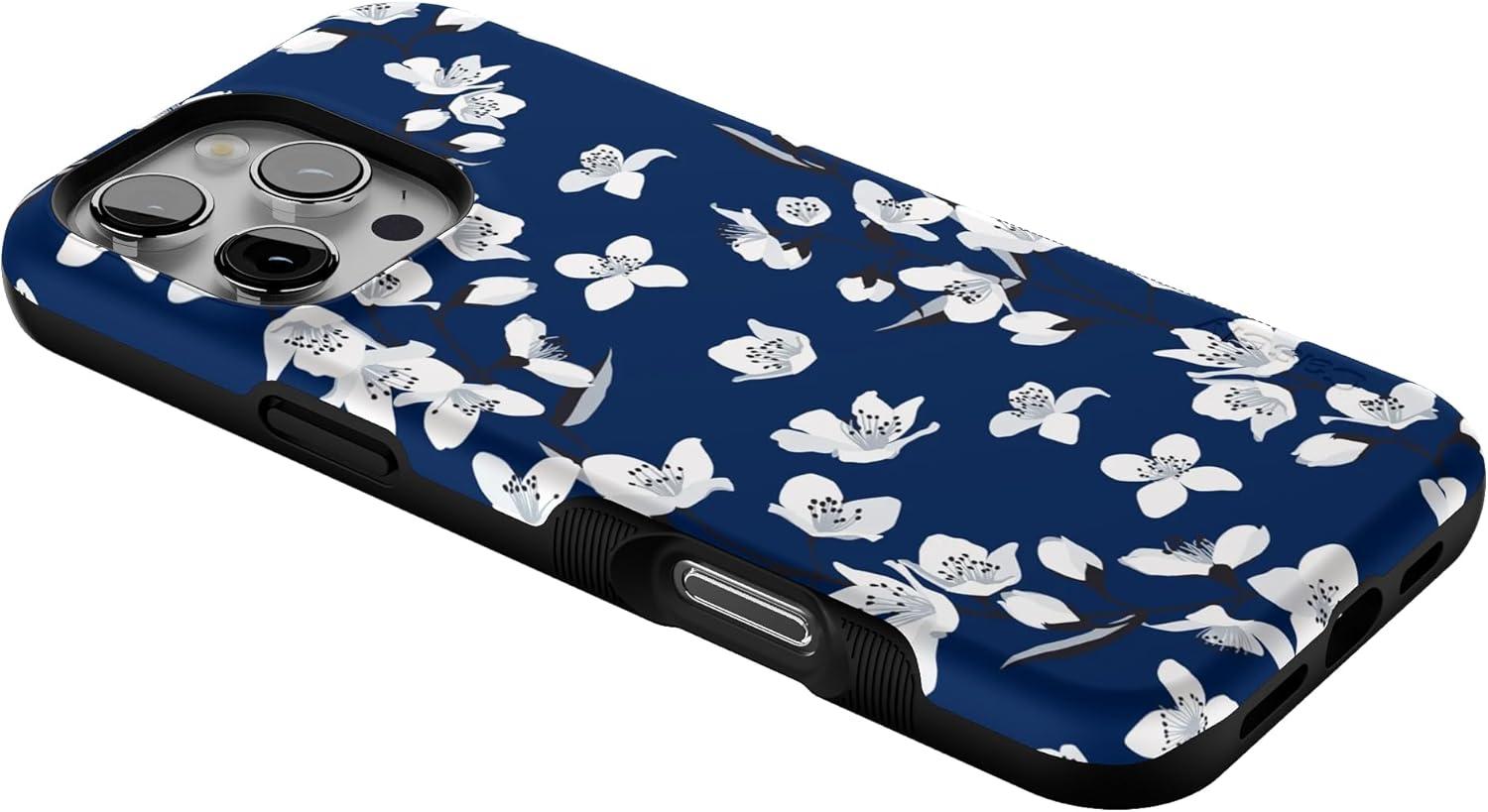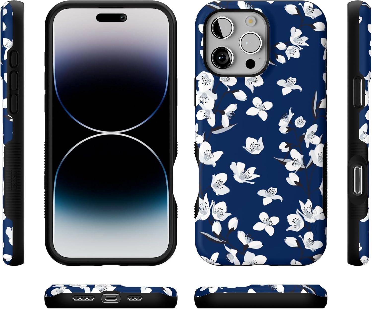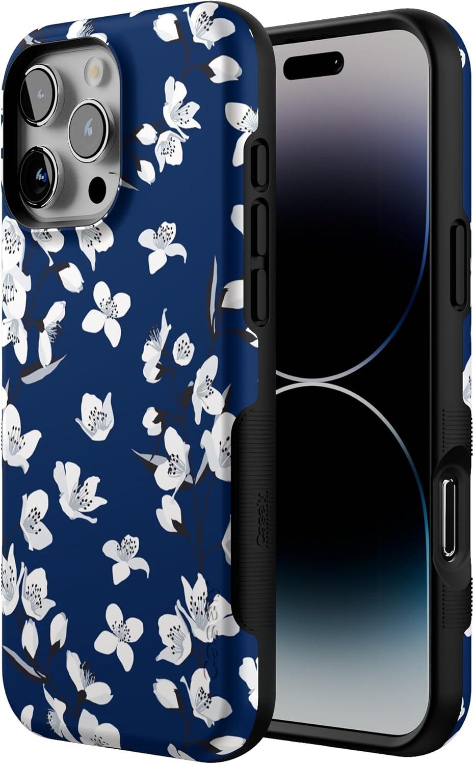 Casely iPhone 16 Pro Max Case | Rustic Roses | Boho Bouquet | Bold Protective Design | Compatible with MagSafe(Navy Cherry Blossom | Floral Forest)