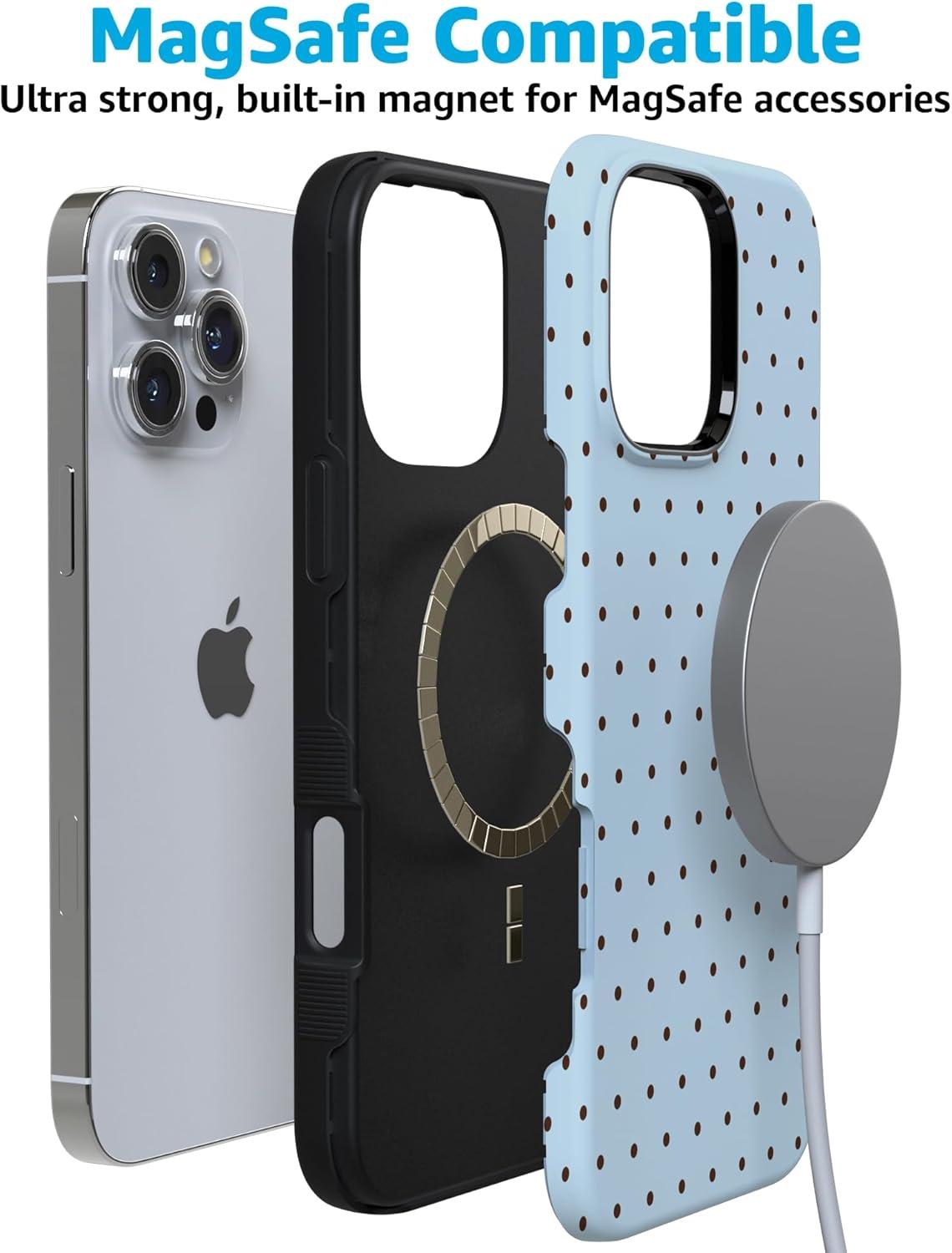 Casely iPhone 16 Pro Max Case | Rustic Roses | Boho Bouquet | Bold Protective Design | Compatible with MagSafe(On the Dot | Blue Polka Dot)
