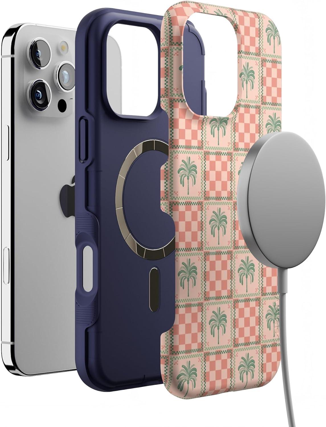 Casely iPhone 16 Pro Max Case | Rustic Roses | Boho Bouquet | Bold Protective Design | Compatible with MagSafe(Palm Beach | The Social Club)