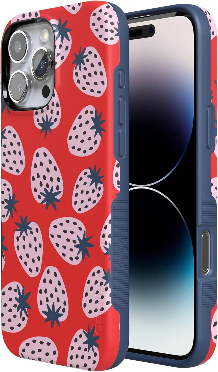 Casely iPhone 16 Pro Max Case | Rustic Roses | Boho Bouquet | Bold Protective Design | Compatible with MagSafe(Red Strawberry | I’d Pick You)