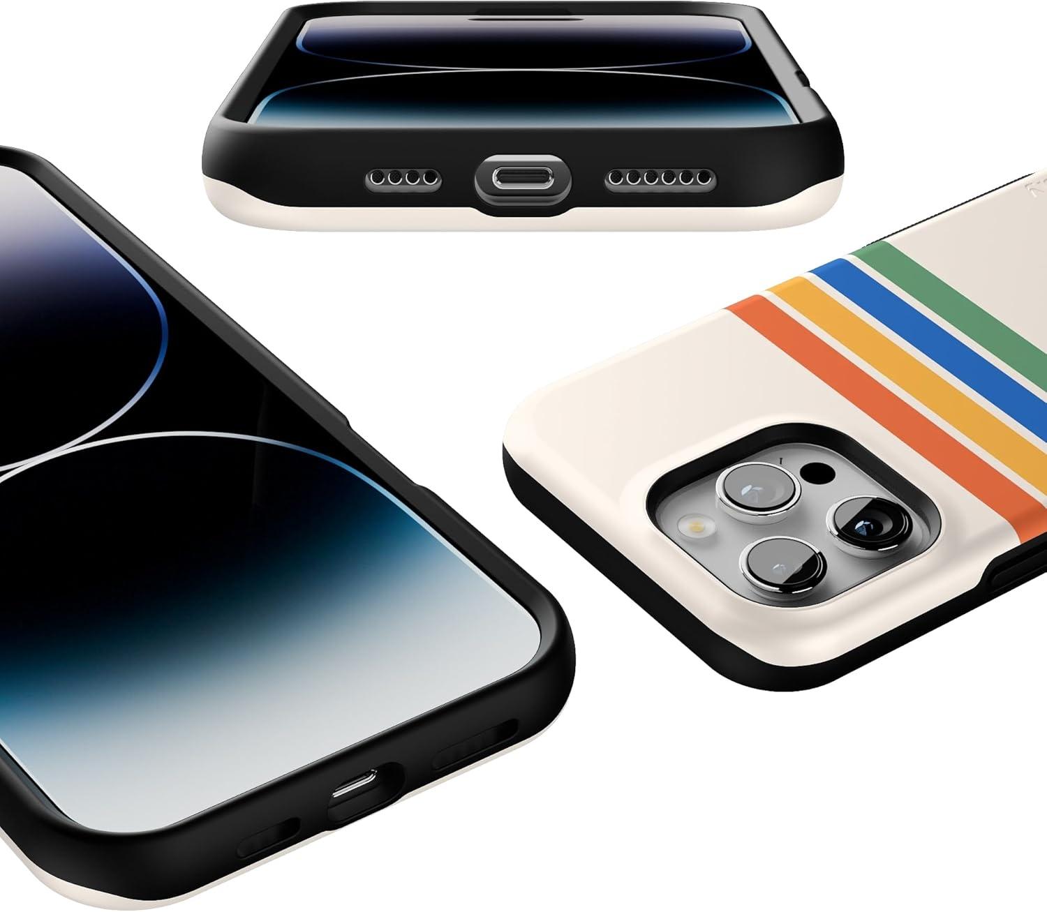 Casely iPhone 16 Pro Max Case | Rustic Roses | Boho Bouquet | Bold Protective Design | Compatible with MagSafe(Totally Groovy | Rainbow Stripes Colorblock)