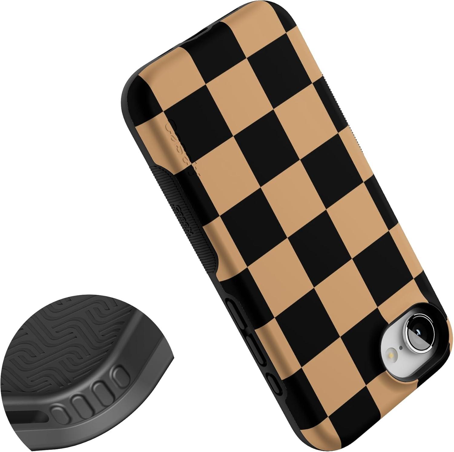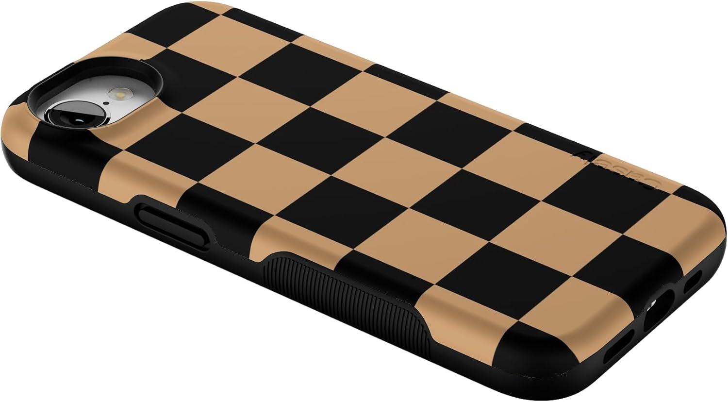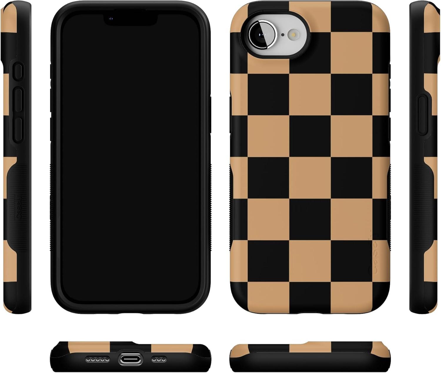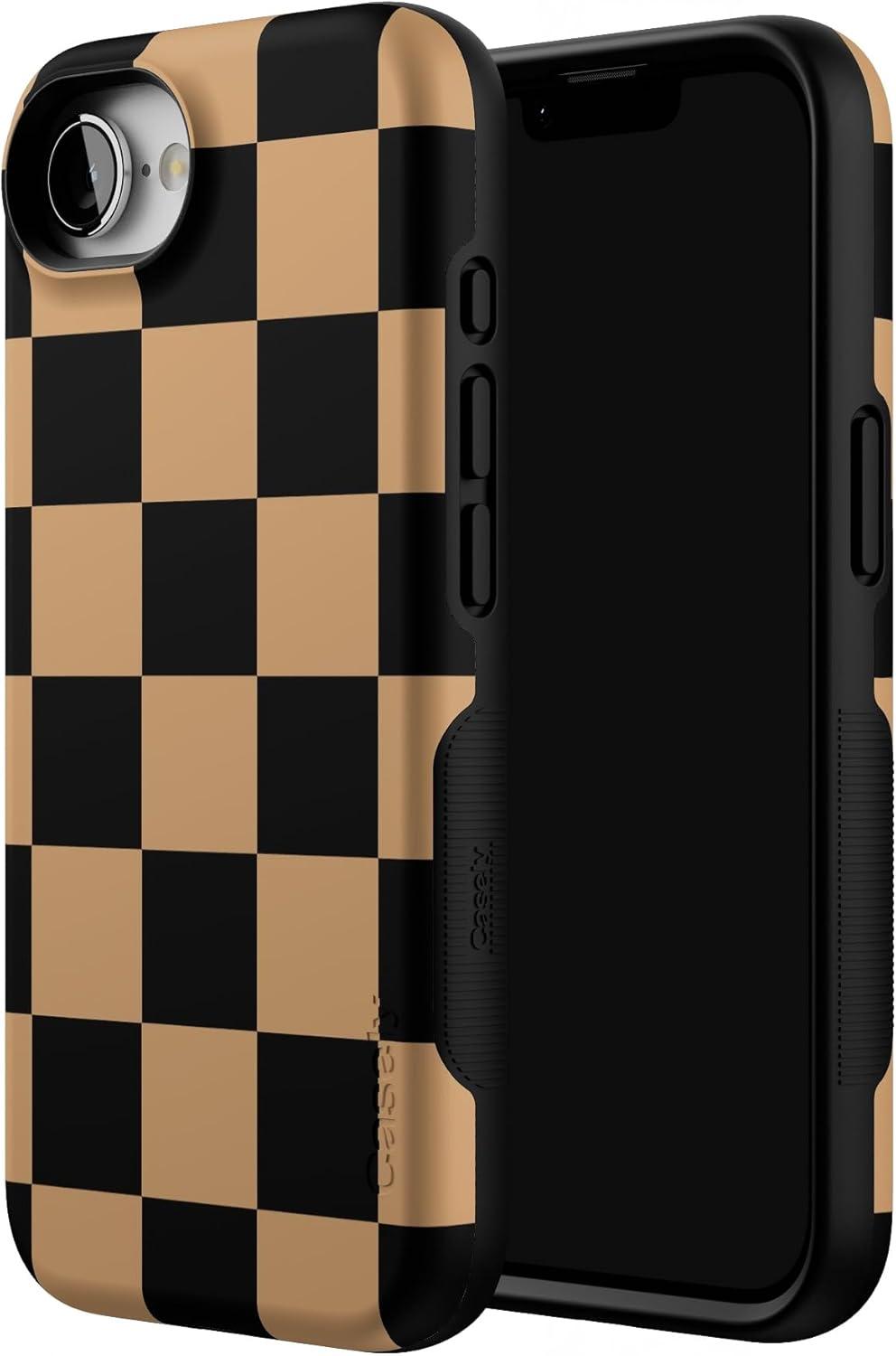 Casely iPhone 16e Case | Fit Check | Black & Brown Checkerboard | Bold Protective Design | MagSafe Compatible Design