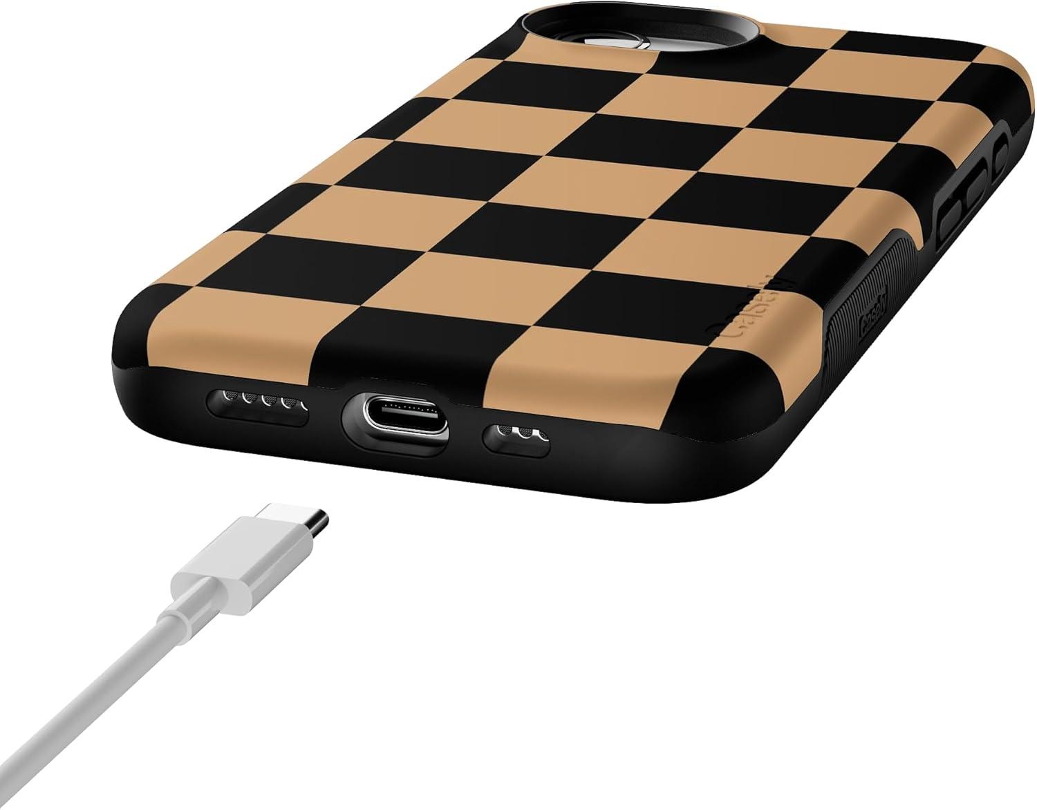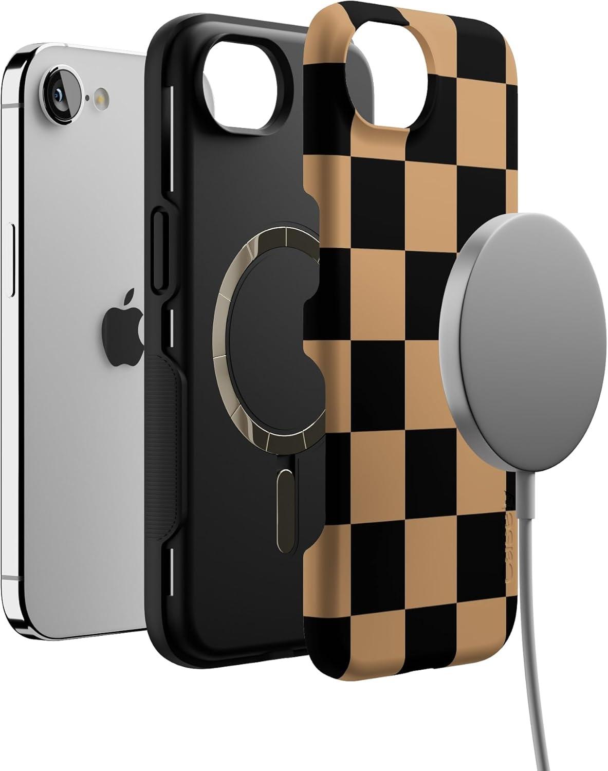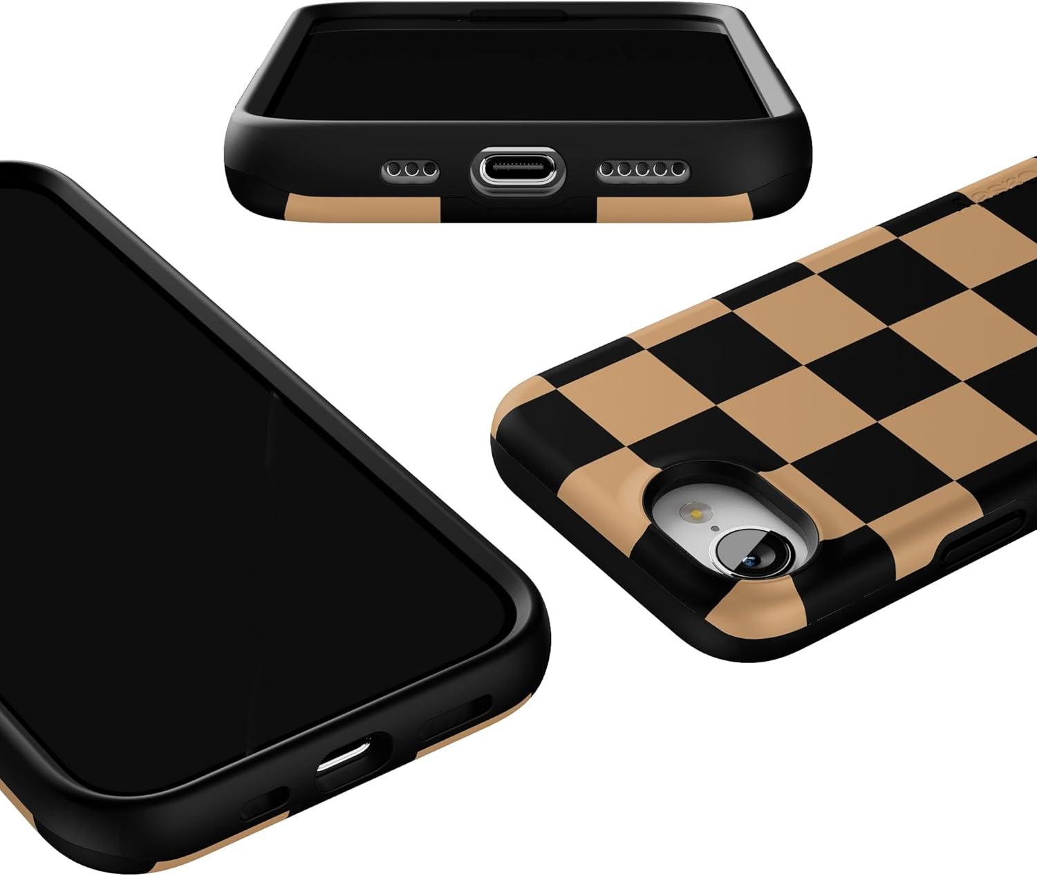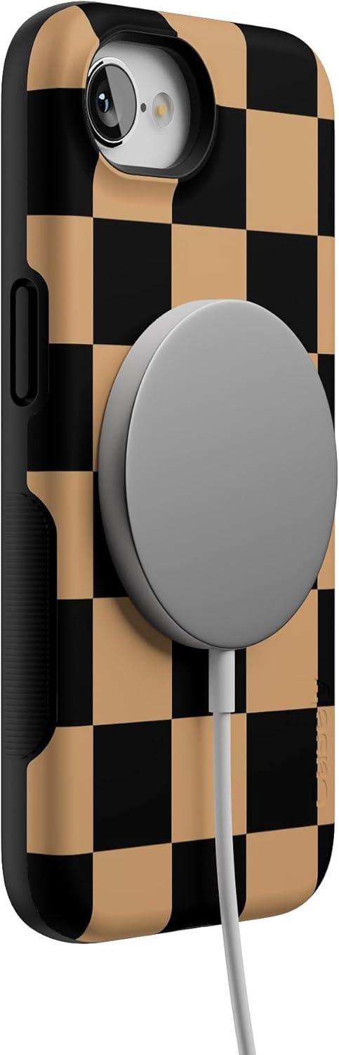 Casely iPhone 16e Case | Fit Check | Black & Brown Checkerboard | Bold Protective Design | MagSafe Compatible Design