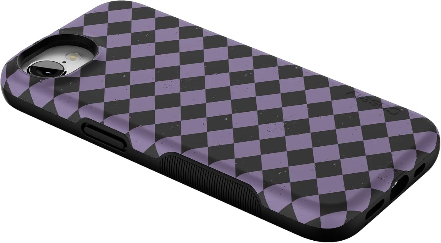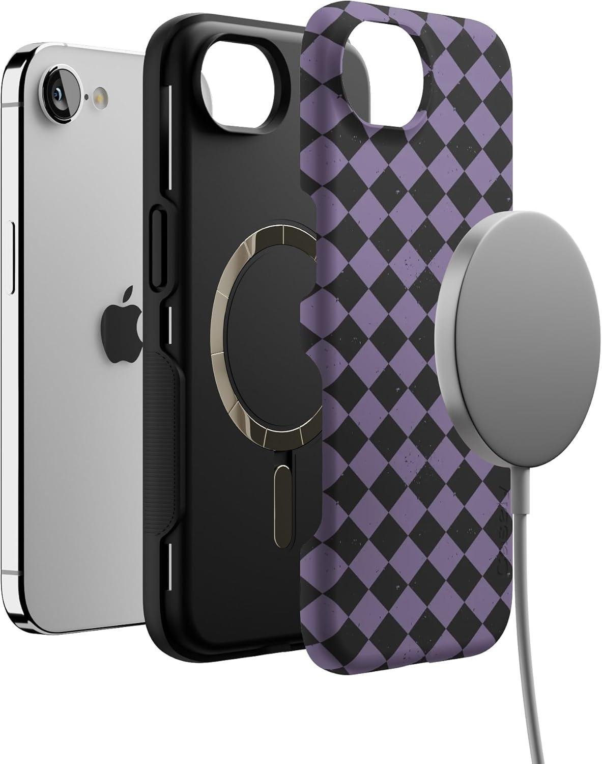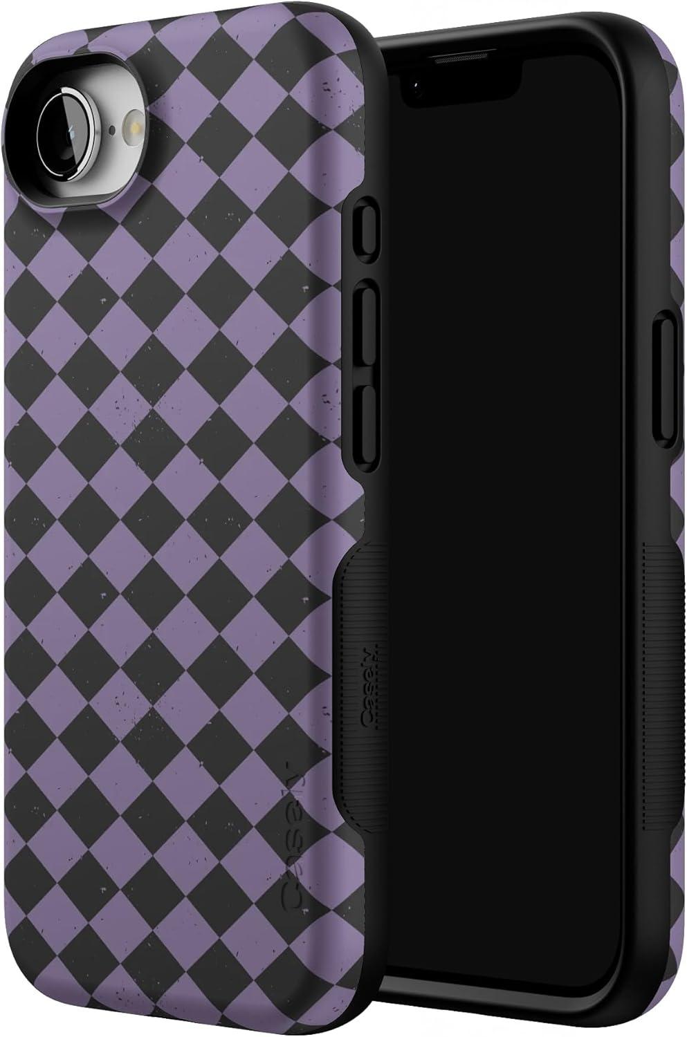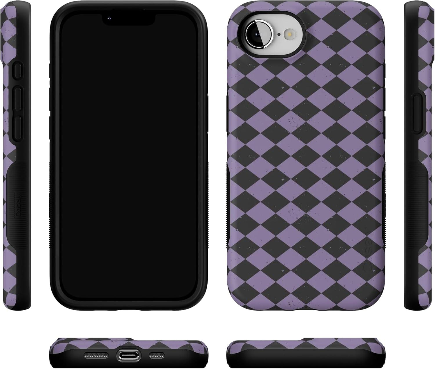 Casely iPhone 16e Case | Harlequin Midnight Diamond | Black and Purple | Bold Protective Design | MagSafe Compatible Design