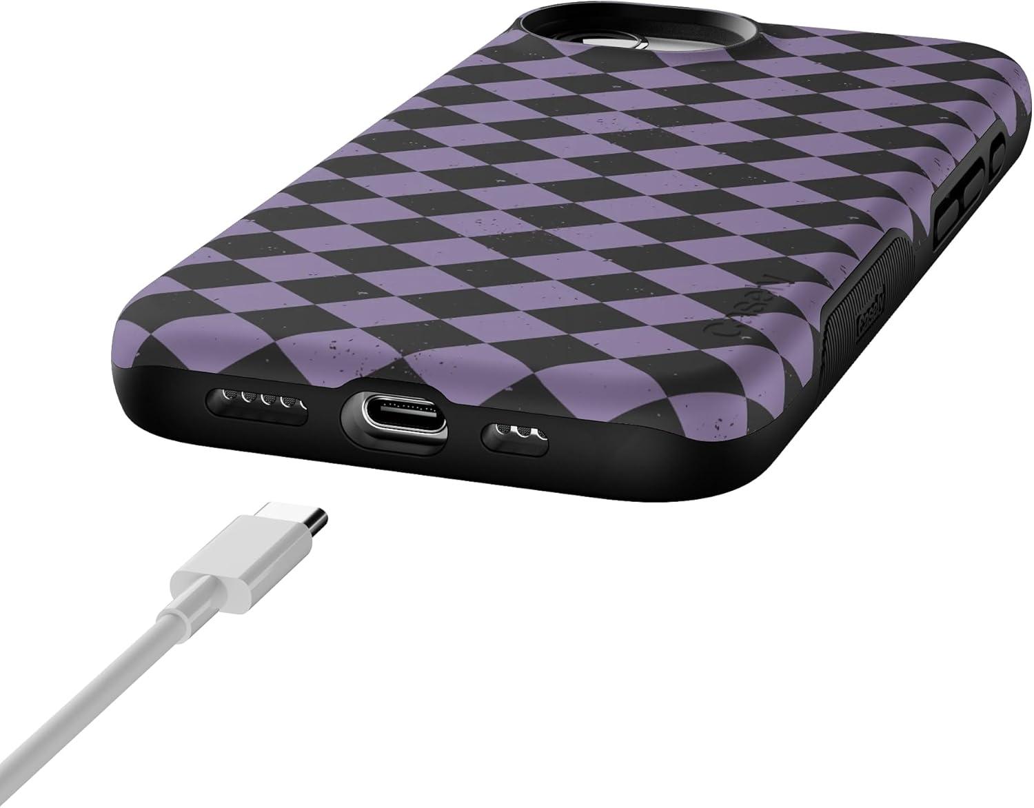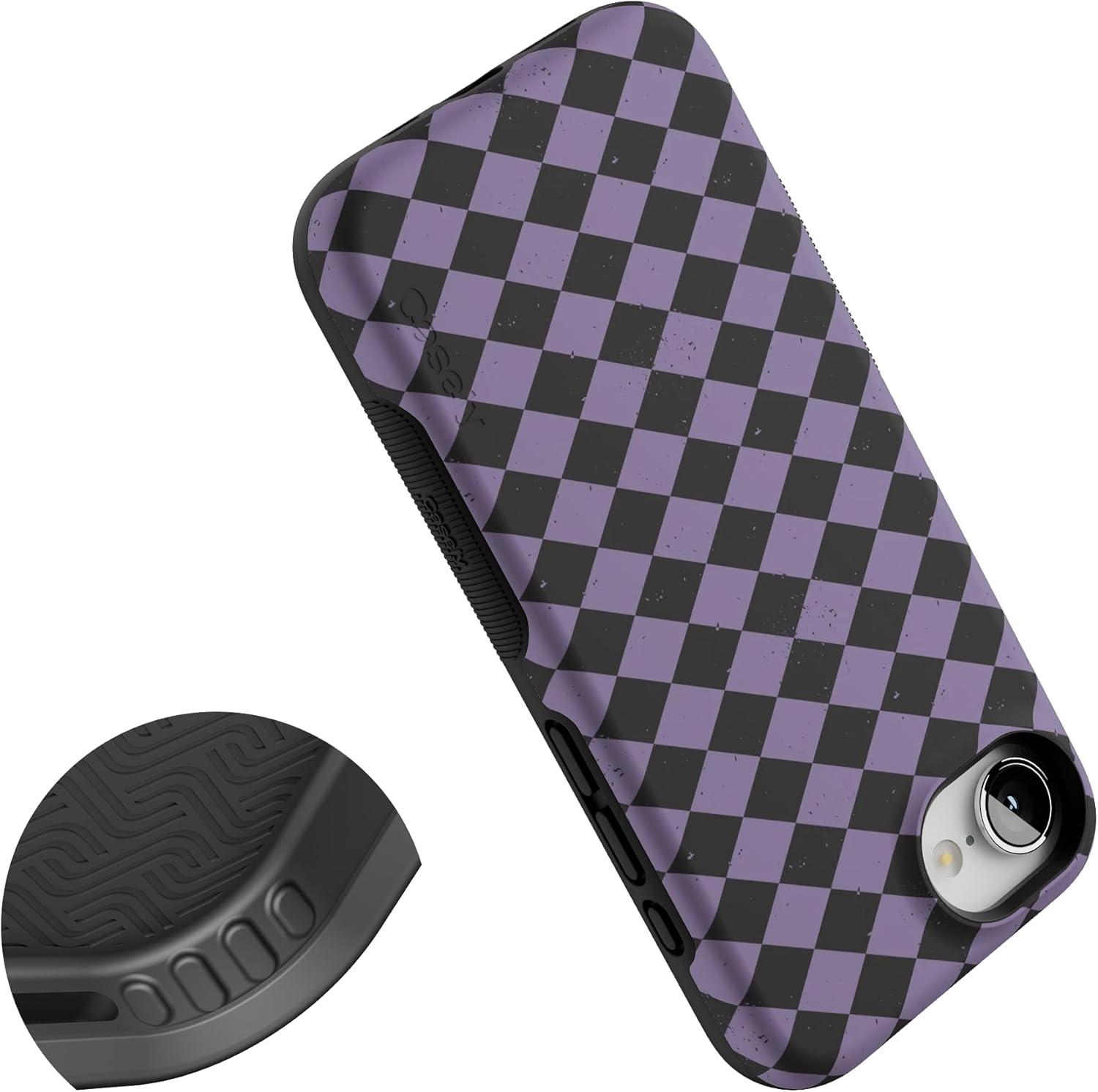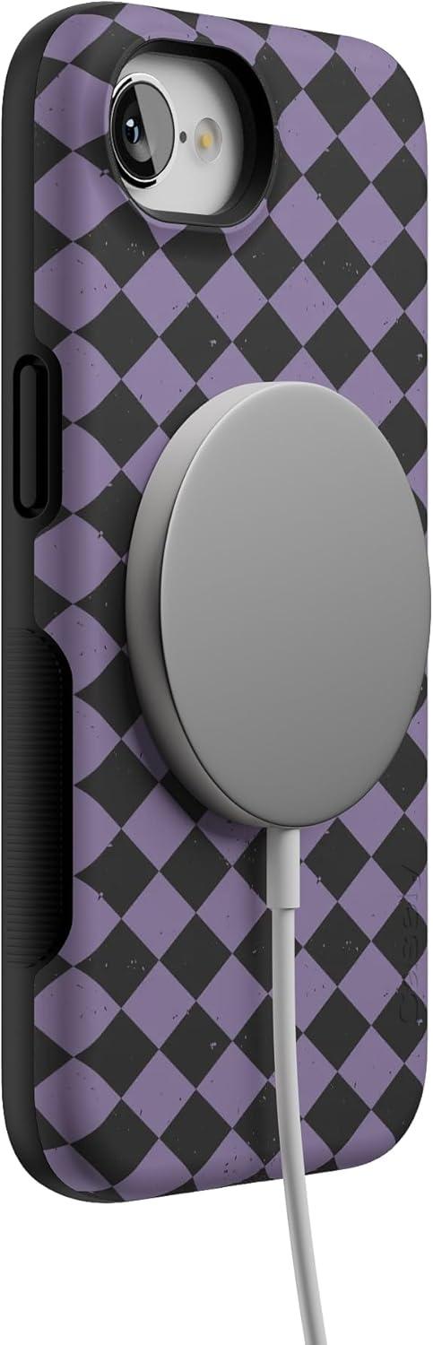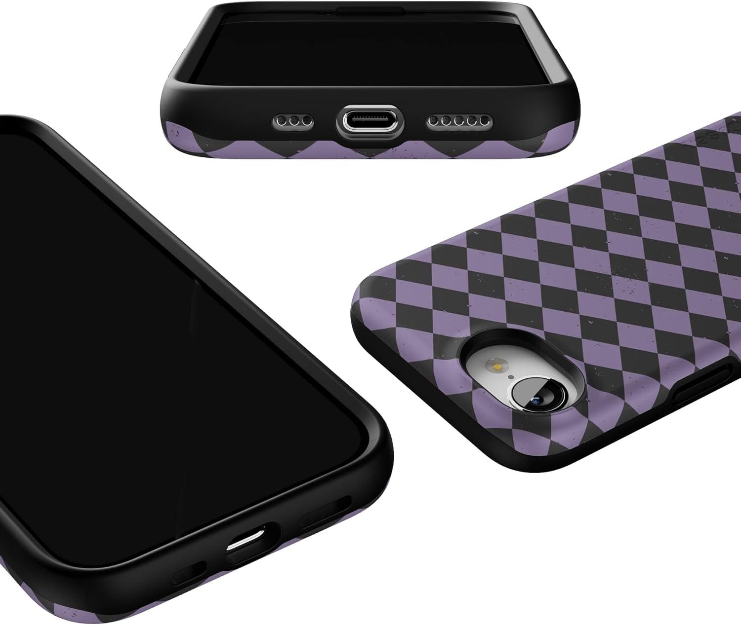 Casely iPhone 16e Case | Harlequin Midnight Diamond | Black and Purple | Bold Protective Design | MagSafe Compatible Design